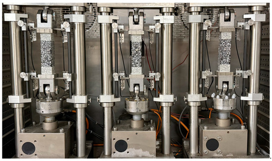 Resistance to low-temperature cracking was evaluated by TSRST following EN 12697-46 (Figure 5). Three prismatic specimens (40 mm square, 160 mm long) were cut from lab-compacted slabs made with a roller compactor (EN 12697-33). Each specimen was fixed at a constant length while cooled at 10 °C/h. As thermal stress increased due to restrained shrinkage, cracking occurred once tensile strength was exceeded. Failure temperature and stress were recorded.