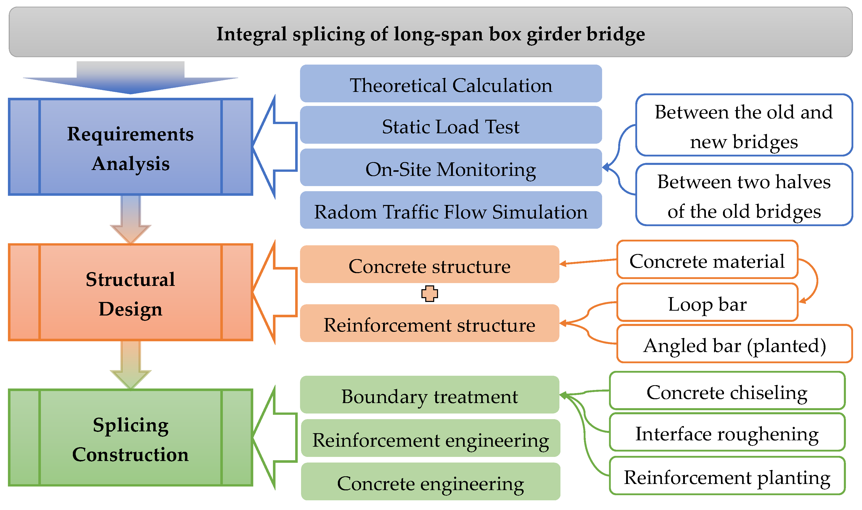16] to ensure structural splicing, specifically targeting uninterrupted traffic during splicing new and old bridges. Therefore, research on the splicing technology used for the separate spans of long-span existing bridges still lacks sufficient support, and needs further study.