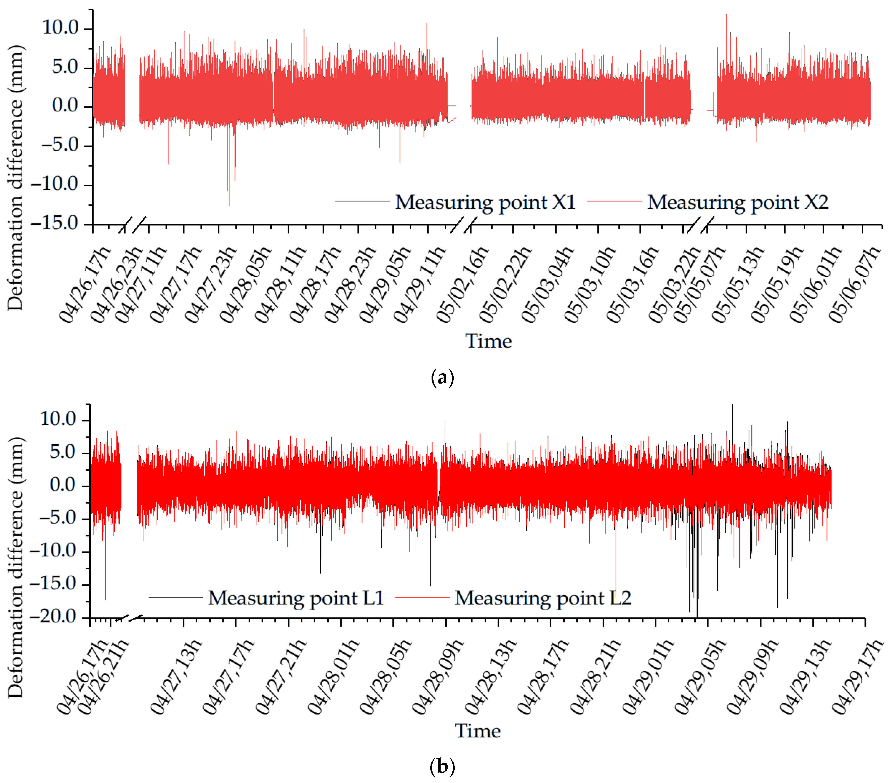 Although the method of obtaining the deformation difference using on-site monitoring is more direct, the length of the monitoring cycle is still limited, the monitoring cost is high, and many uncontrollable factors may have an influence. Therefore, it is necessary to introduce relevant simulation methods to further expand the test data acquisition cycle and further improve the rationality of the deformation difference value.
