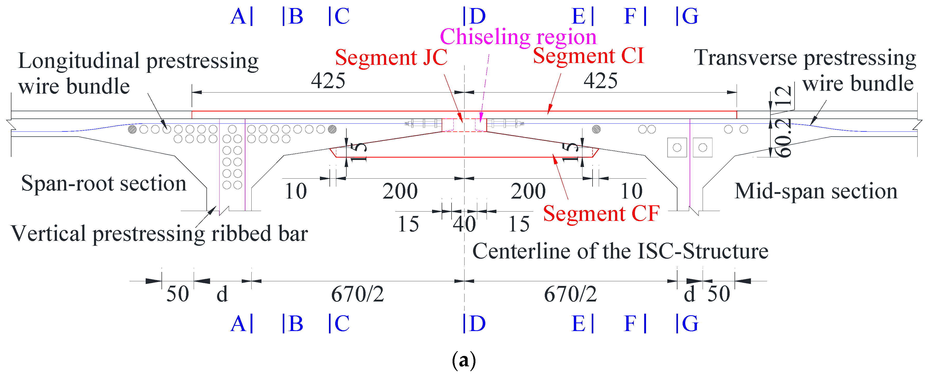 In addition, vertical reinforcement should be set among the segments CI, JC, and CF, so that the three parts of the ISC-Structure can effectively transfer forces to each other.
