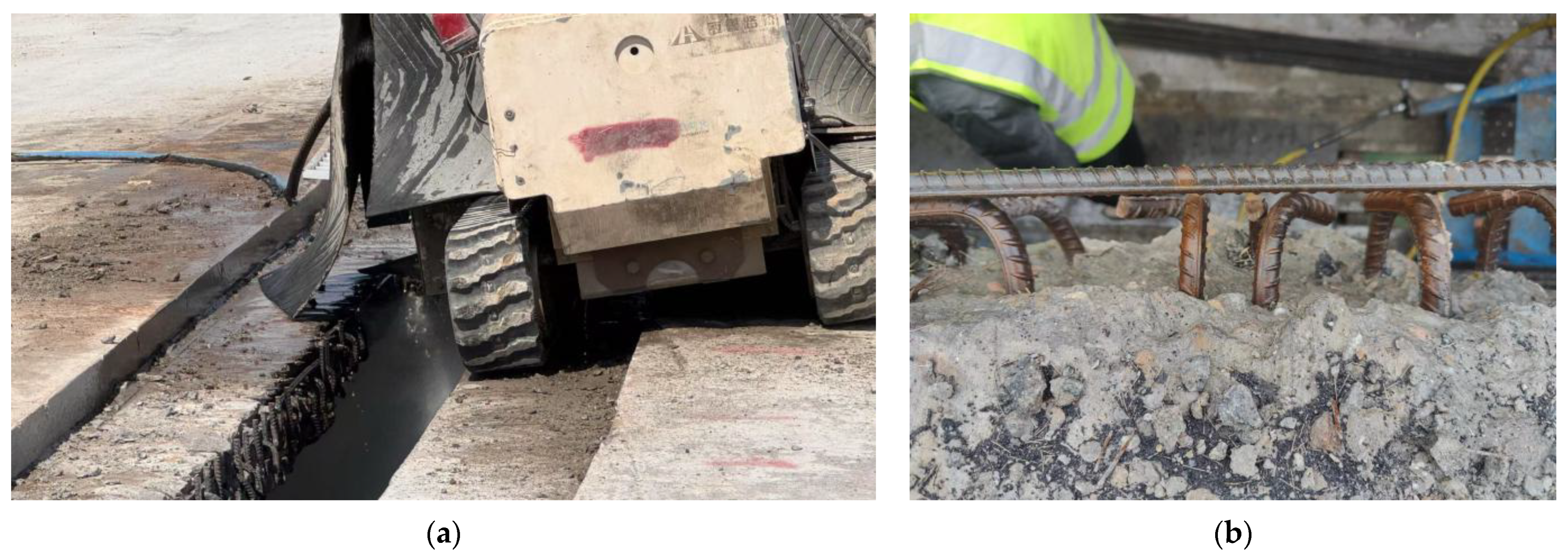 Conversely, connecting these layers should be adopted to ensure smoother traffic flows in actual projects. Depending on the width of the splicing joints, the connection schemes of the pavement layer (asphalt) and the integral layer or the flange plate structure layer (concrete) can be implemented. Wang et al. [