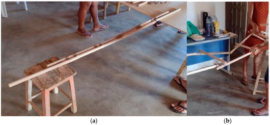 In this research, we adopted a physical interface as the main co-design tool for the design of roundwood structures and photovoltaic systems by non-designer users. They are mediation tools that are self-explanatory and intuitive, which facilitate participation without the need for specialized knowledge []. Open-ended interfaces have proven to be effective in contexts of vulnerability by promoting engagement, autonomy, creativity, reflection, and the design of solutions [].