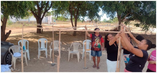 Ten women aged between 30 and 64 participated in the co-design charrettes. They carried out various activities to generate income, such as farming, teaching, handicrafts, sales, and food processing. These women are local leaders and representants of the two community associations. They also belong to a social group with national and international reach: the Landless Rural Workers Movement (MST in Portuguese). Some of them are responsible for initiating this project and have made relevant contributions to recruiting participants and helping to build trust with the community.