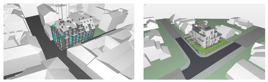 In the test process, real construction projects that had been previously checked by the building authority were used. Table 2 compares some characteristic values of the building projects used as a basis [35]. Pictures of the used BIM models are shown in Figure 4.