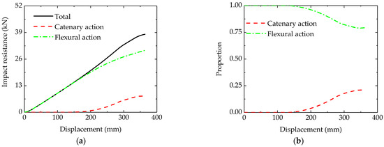 Effect of various load-resisting mechanisms under mid-span impact scenario. (a) Impact resistance; (b) proportion.