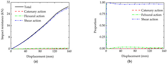 Effect of various load-resisting mechanisms under beam-end impact scenario. (a) Impact resistance; (b) proportion.