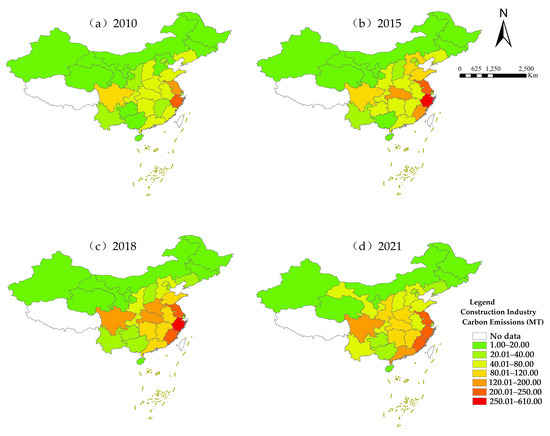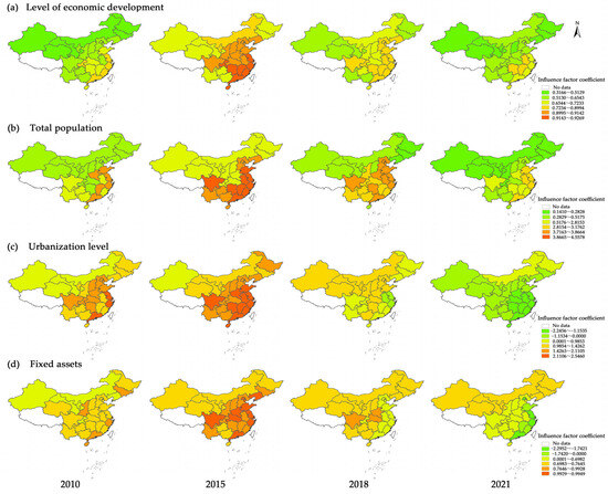 Carbon emissions in the building materialization stage are highly significant and concentrated. Quantification at this stage is essential for assessing carbon reduction potential, guiding energy-saving strategies, and supporting China’s “dual carbon” goals in the construction sector. Distinct from conventional environmental and energy economics analytical approaches, the building carbon emissions in the materialization stage (BCEMS) in 30 provinces of China from 2010 to 2021 were calculated using multi-source data, and the characteristics of their spatio-temporal evolution were analyzed. The key influencing factors were identified using a geographic detector, and their spatial heterogeneity was analyzed with the Geographically and Temporally Weighted Regression (GTWR) model from a geographical analysis perspective. The results indicated the following: (1) From 2010 to 2021, BCEMS exhibited a trend of an “initial increase followed by a decrease and subsequent fluctuation”, with an average annual growth rate of 4.28%. Building materials were the largest contributor to BCEMS, particularly cement and steel. Spatially, the emissions displayed a pattern of “higher in the east, lower in the west”. High–high-agglomeration areas remained stable over time, primarily in Zhejiang and Fujian provinces, while low–low-agglomeration areas were concentrated in Xinjiang. (2) Single-factor detection revealed that fixed assets, population density, and the liabilities of construction enterprises were the dominant factors driving the emissions’ spatial evolution. Two-factor interaction detection identified the economic society and the construction industry as the key influencing domains. (3) The economic development level and the total population showed a positive correlation with BCEMS, with the effect intensity increasing from west to east. The urbanization level and fixed assets also generally showed a positive correlation with BCEMS; however, their effect intensity initially increased positively from west to east and then turned into a negative enhancement. The findings provide references for implementing regionally differentiated carbon reduction measures and promoting green and low-carbon urban transformation in China’s construction industry. Full article