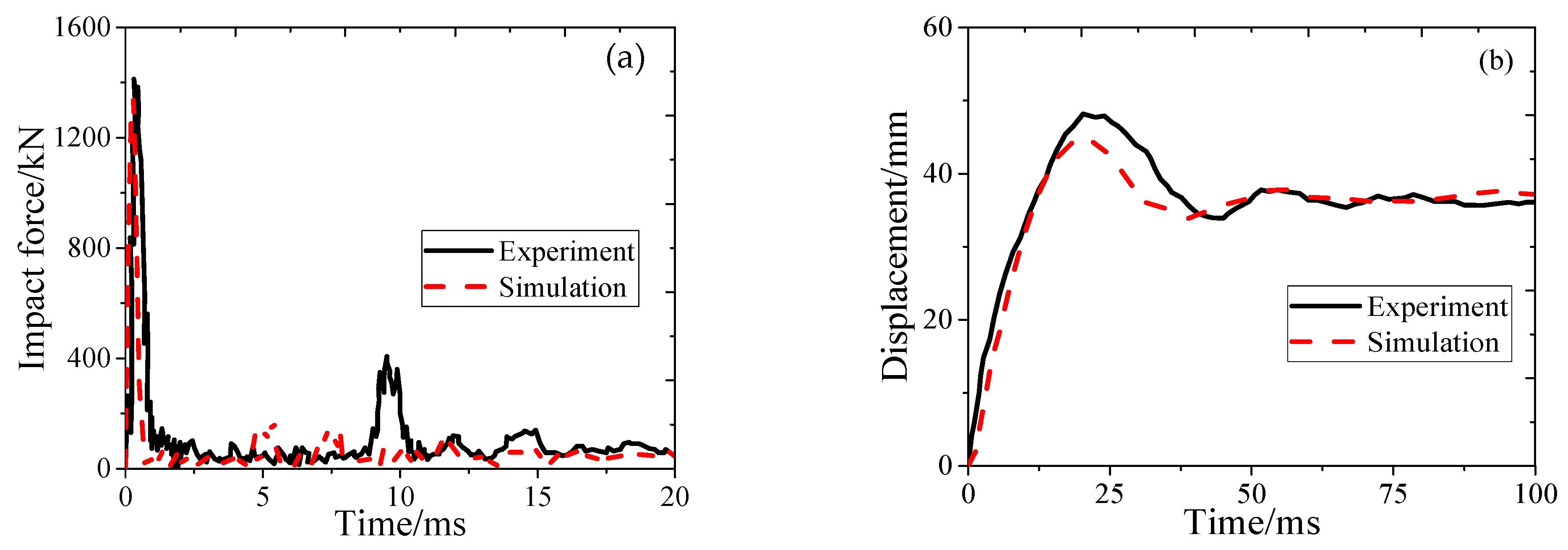 - Meng, Y. Experiment and Numerical Simulation Study on Reinforced Concrete Beam Under Impact Loading; Hunan University: Changsha, China, 2012. [Google Scholar]