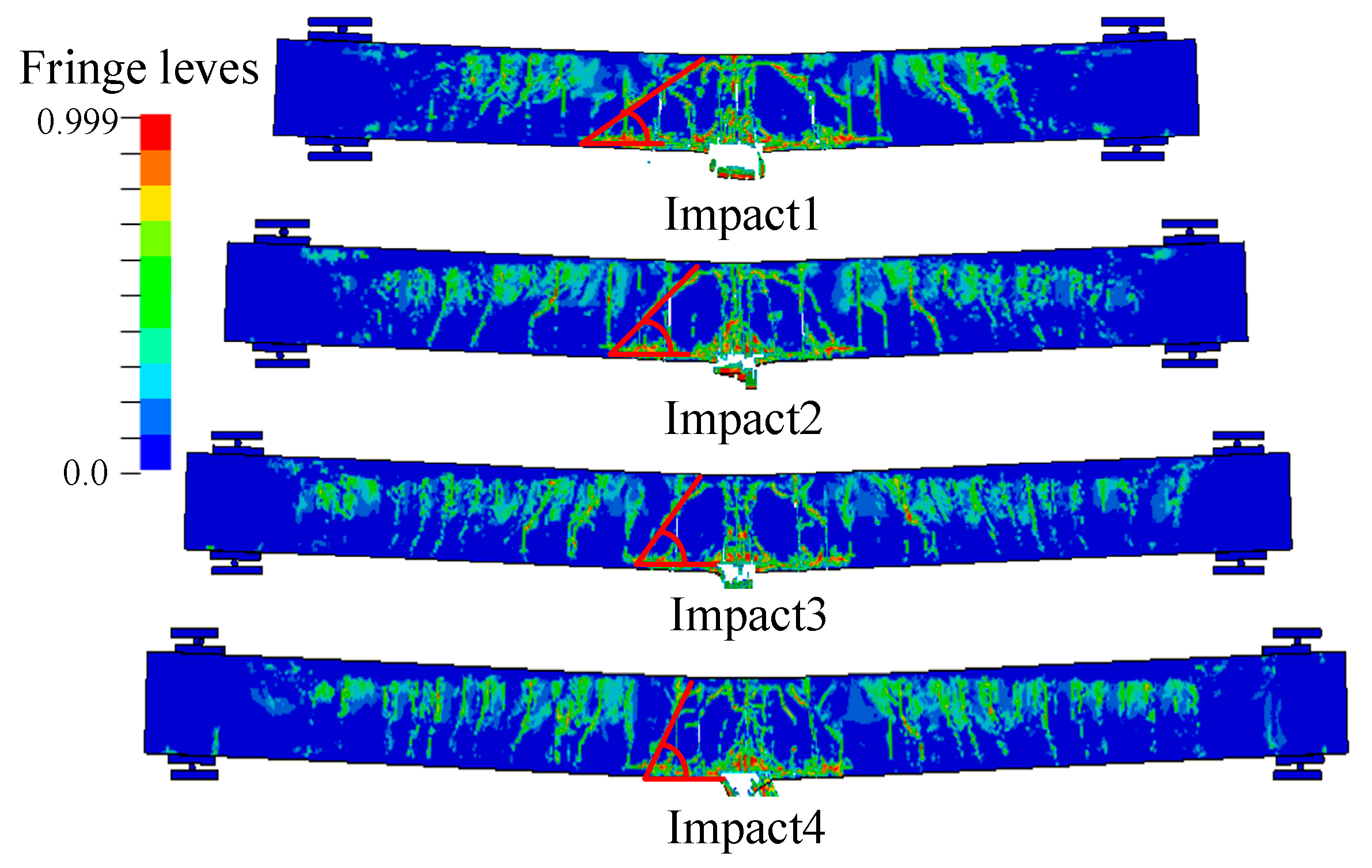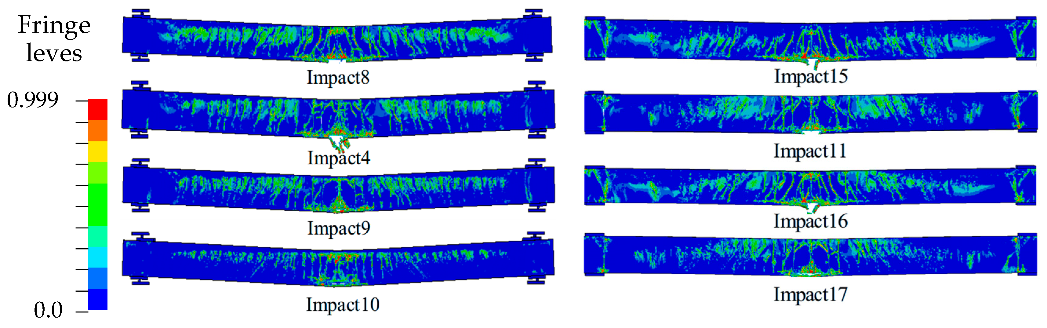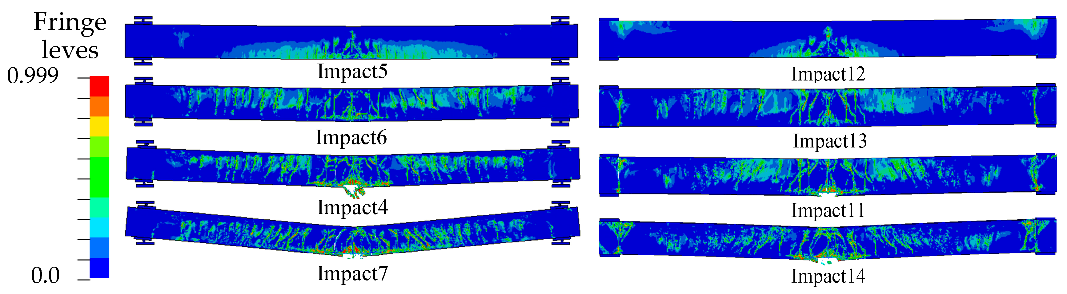 - Jiang, H.; Wang, X.; He, S.H. Numerical simulation of impact tests on reinforced concrete beams. Mater. Des. 2012, 39, 111–120. [Google Scholar] [CrossRef]