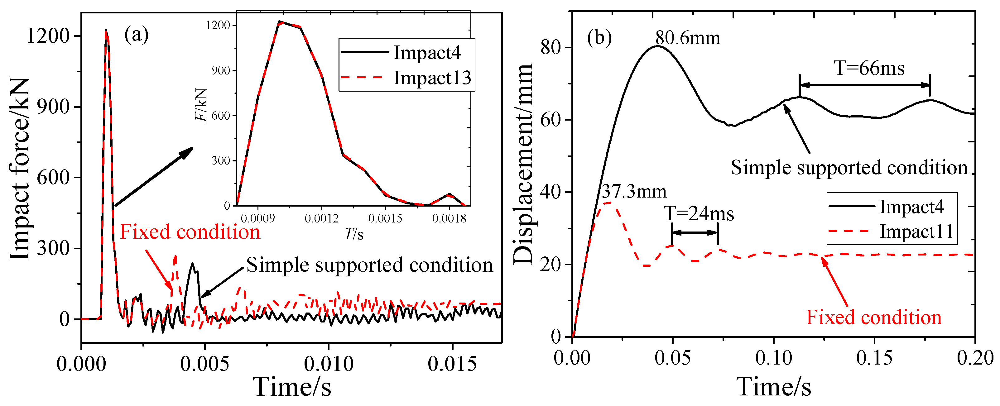 - Pham, T.M.; Hao, H. Effect of the plastic hinge and boundary conditions on impact behavior of reinforced concrete beams. Int. J. Impact Eng. 2017, 102, 74–85. [Google Scholar] [CrossRef]