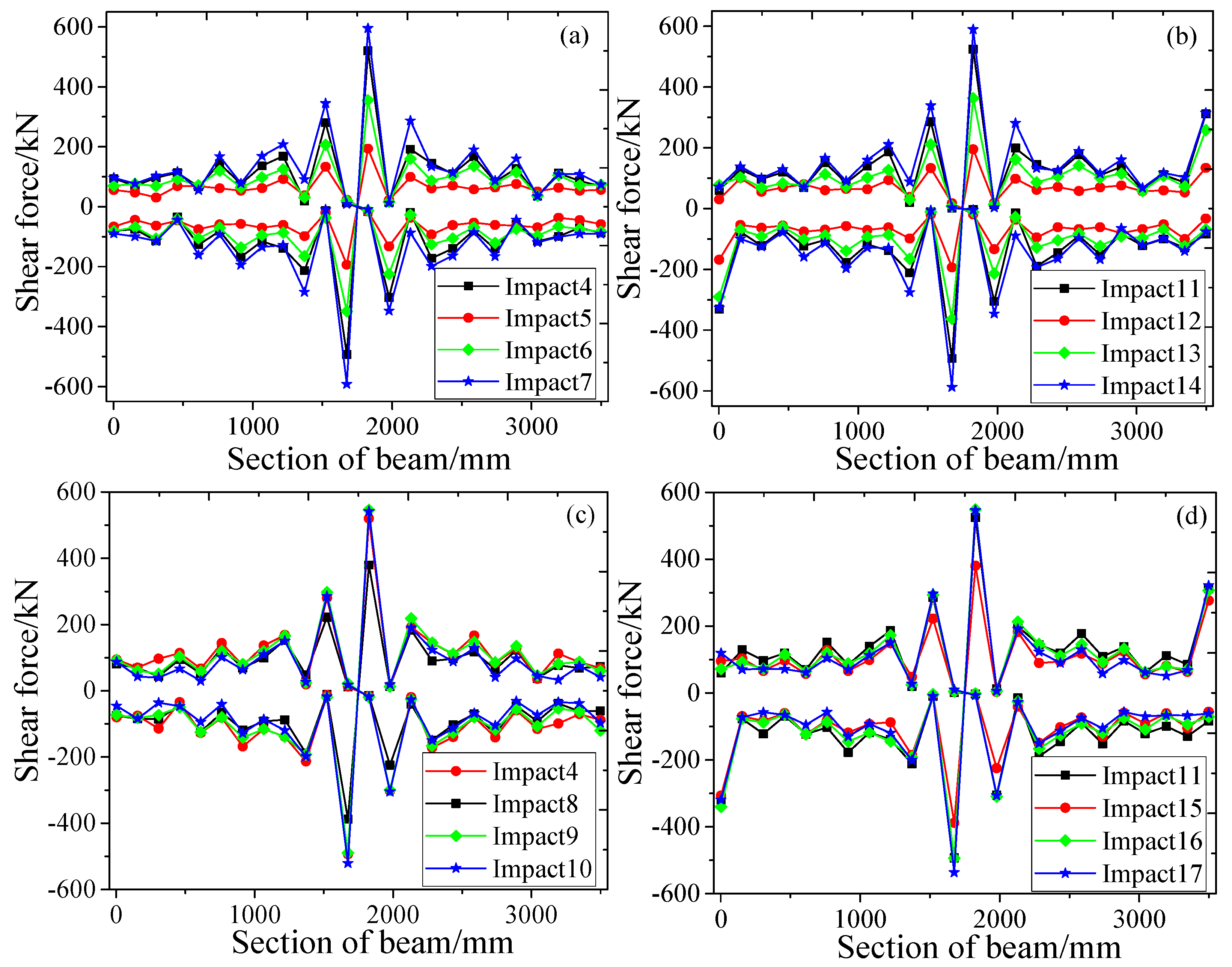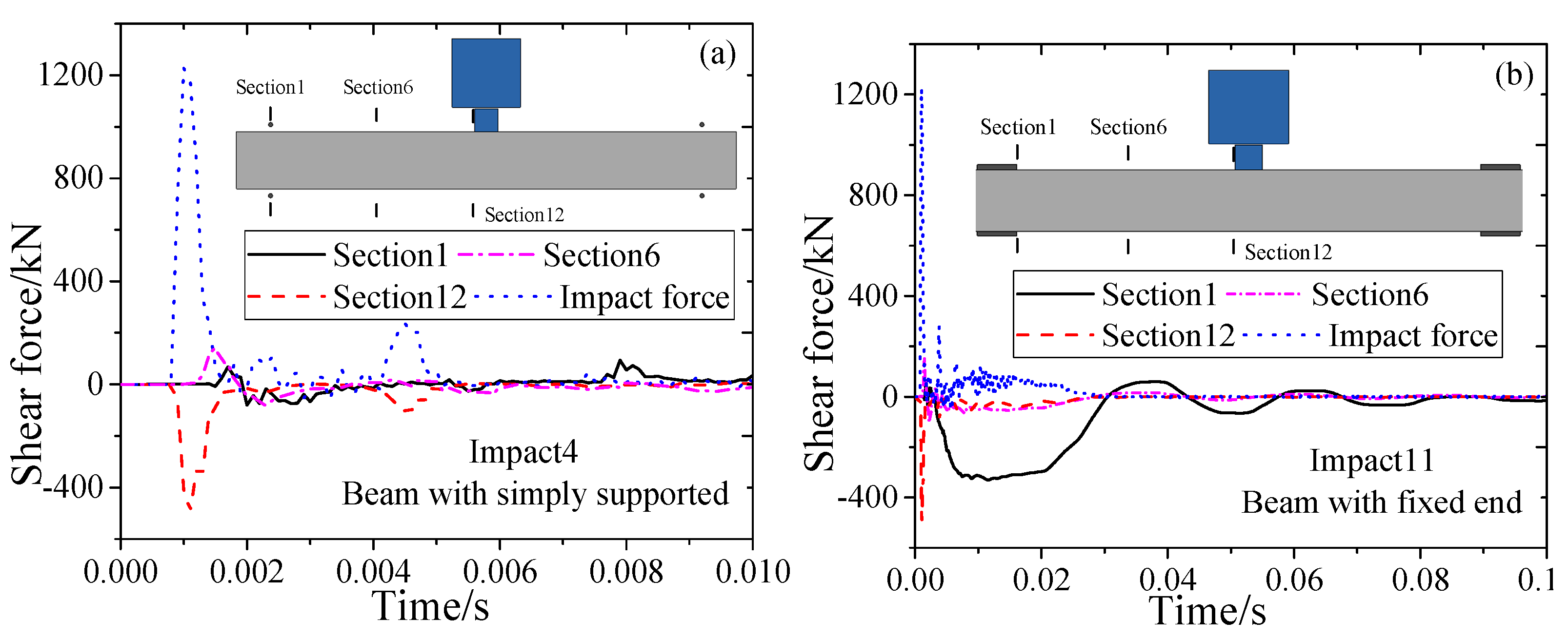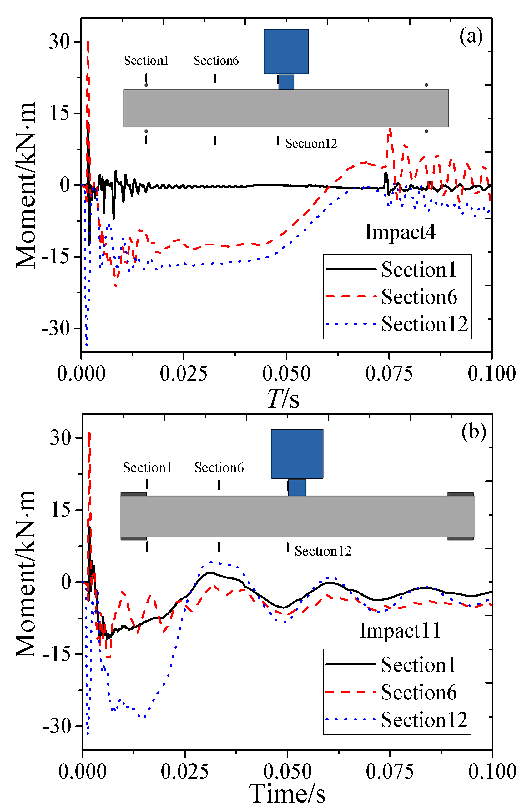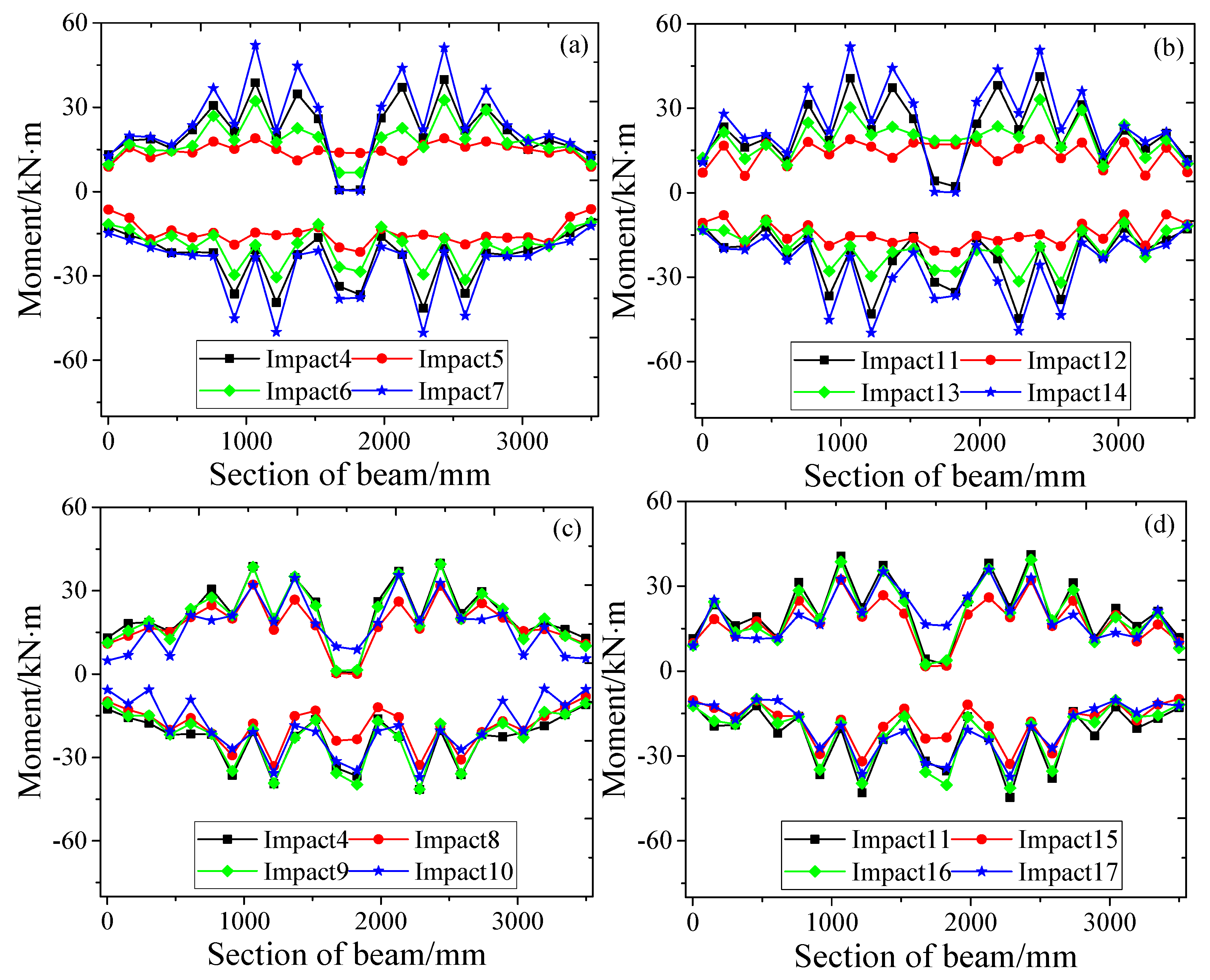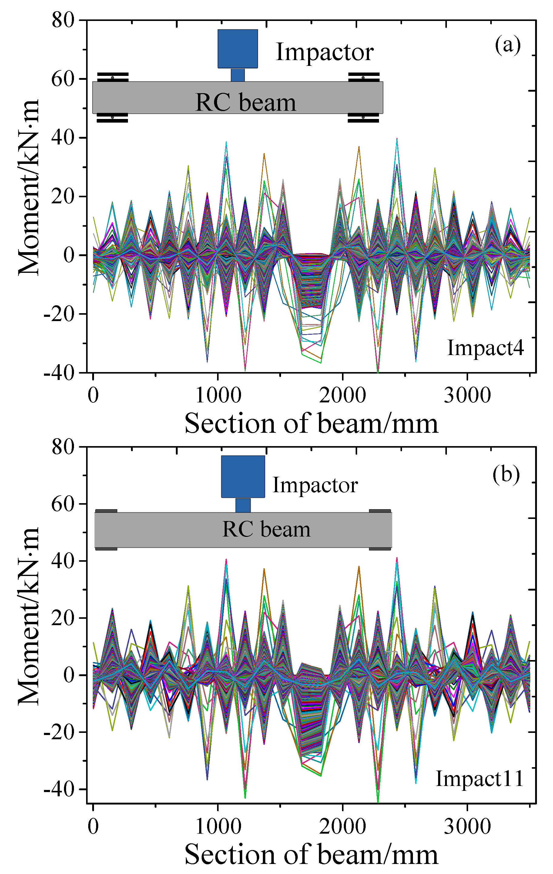 - The bending moments of RC beams with simply supported and fixed- boundary conditions are similar, and the bending moment in the impact position is much greater than that in other areas.