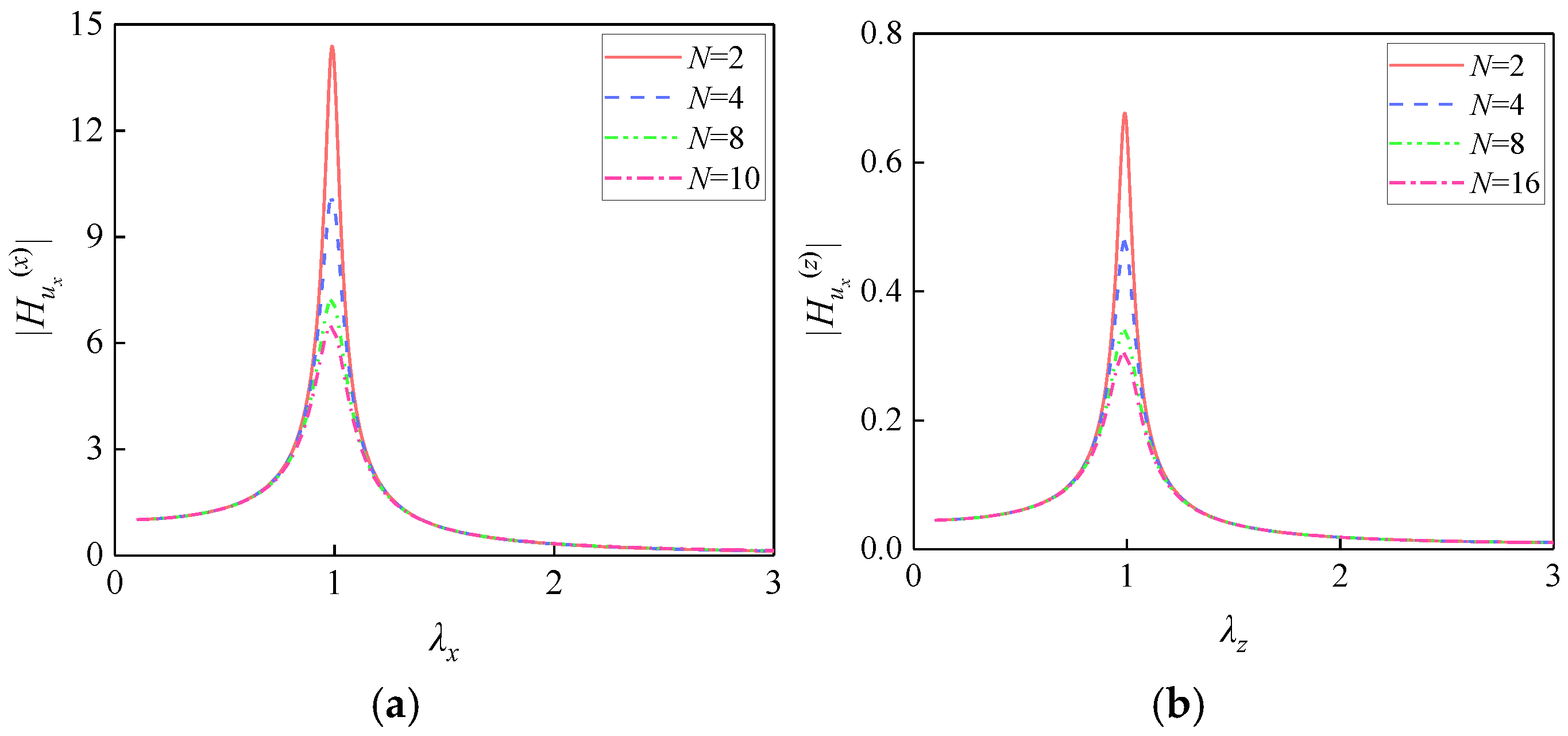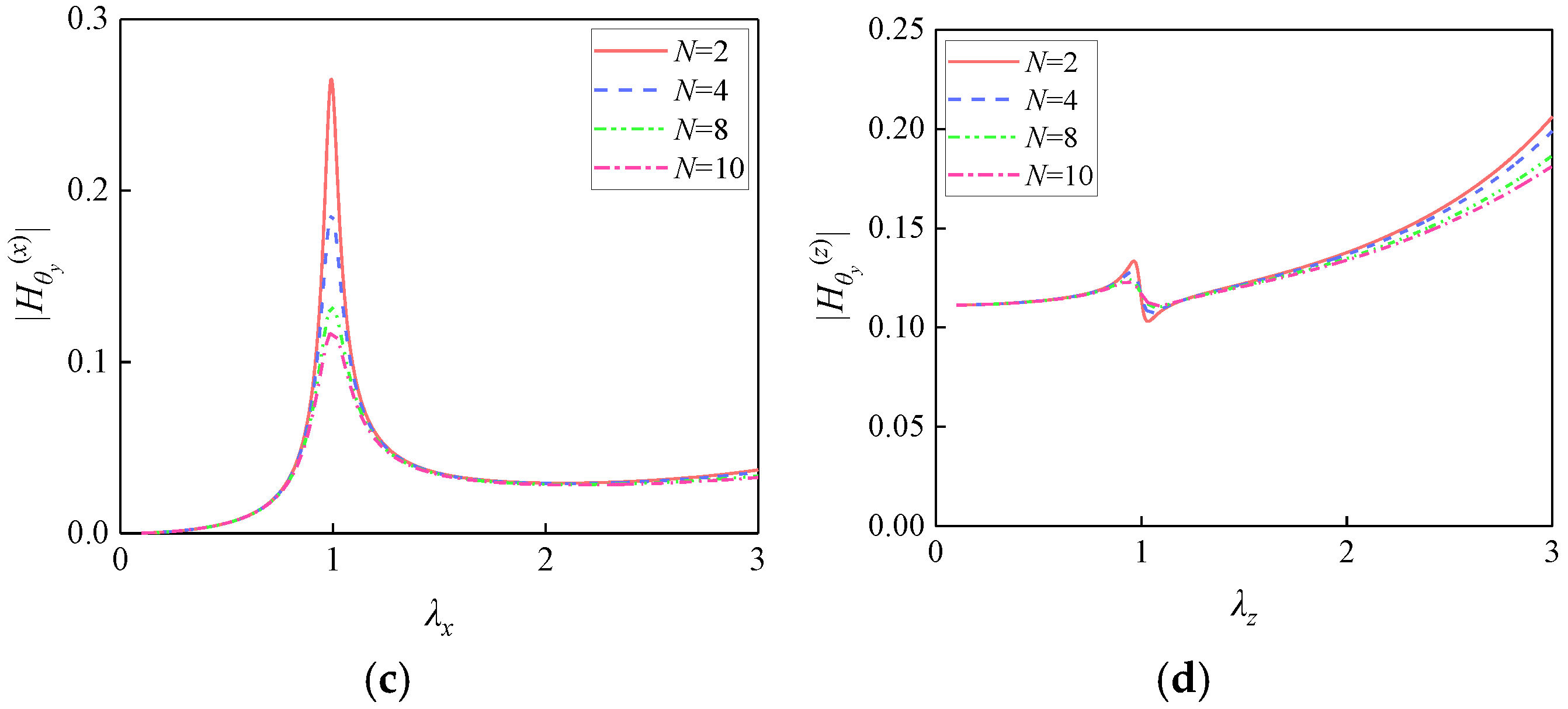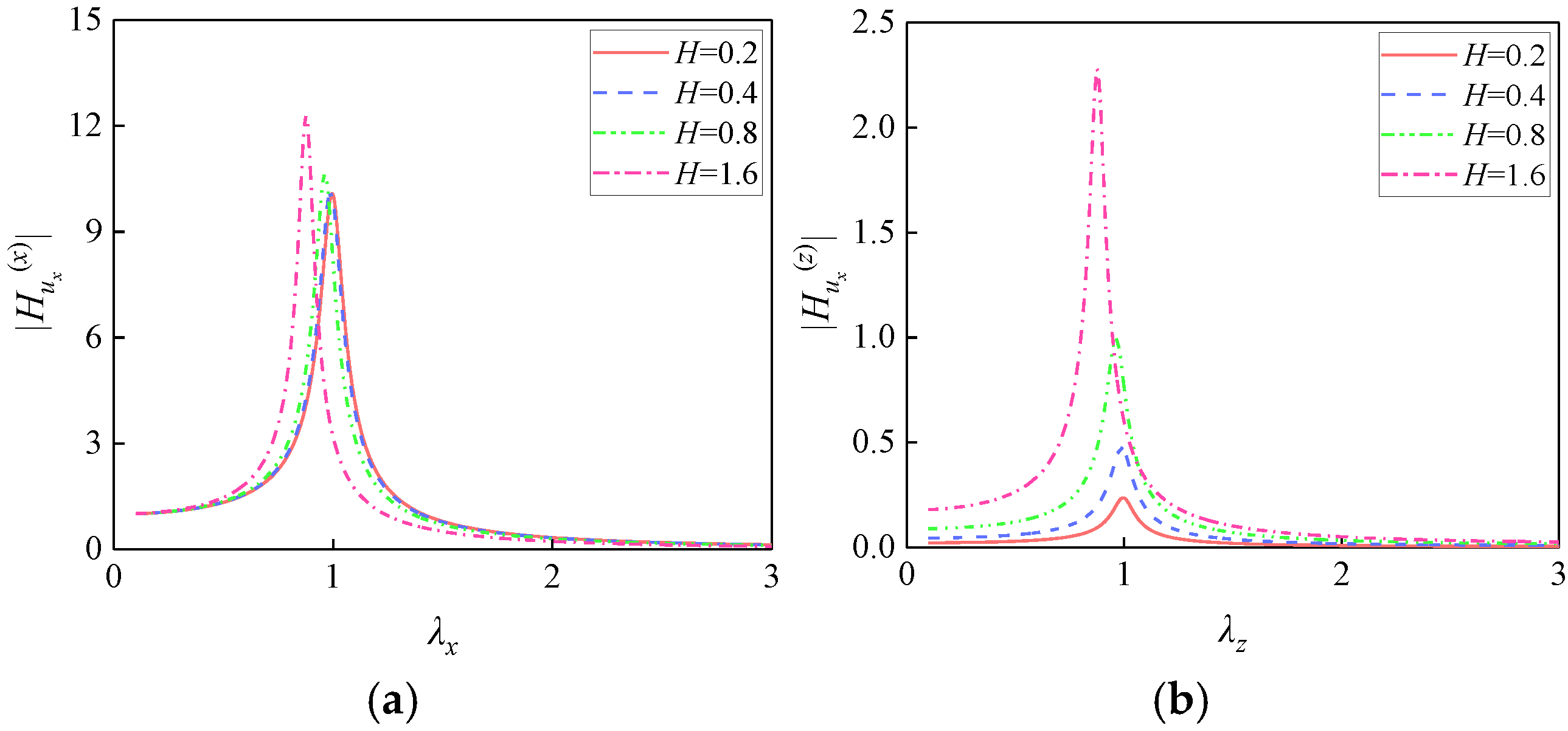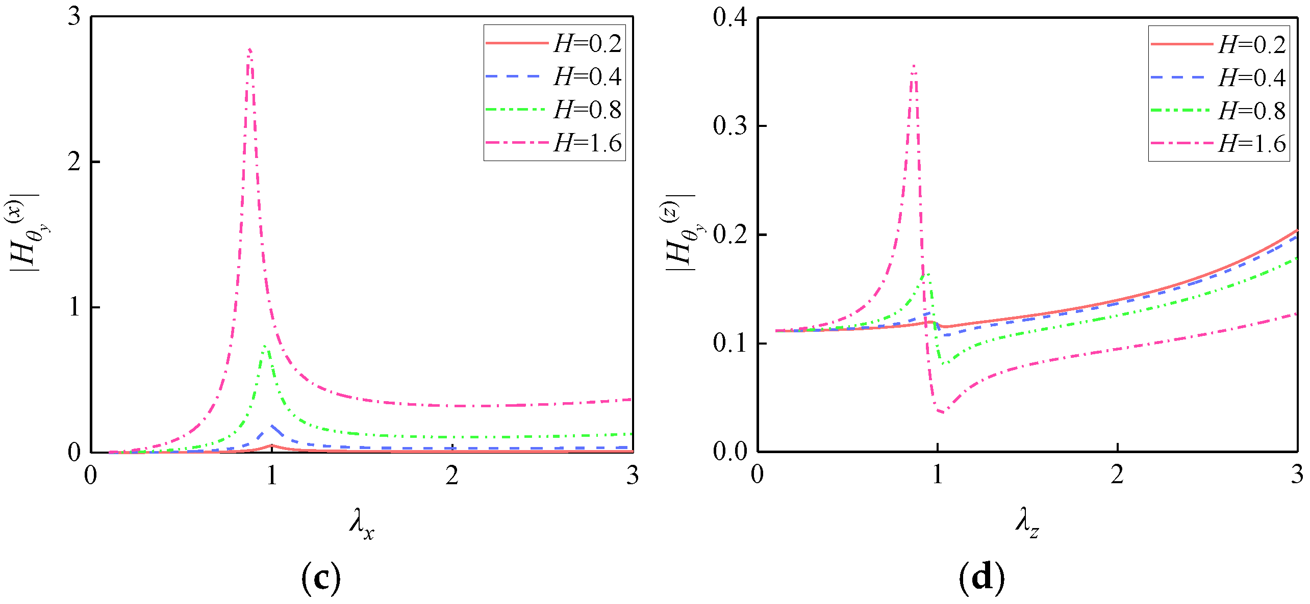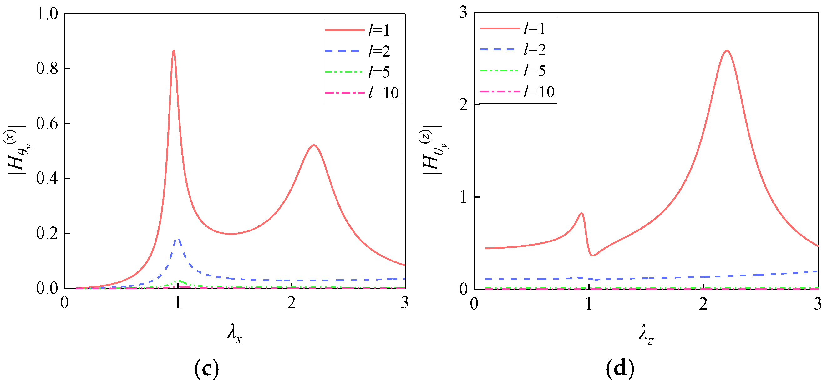 - When H = 0, the height-dependent coupling terms vanish from the dynamic equations and frequency response functions. Consequently, the ux equation simplifies to an SDOF system driven solely by X-direction excitation, completely decoupled from θy. Similarly, the θy equation reduces to an SDOF system excited exclusively by the eccentric moment from Z-direction excitation, decoupled from ux. Under this condition, horizontal excitation induces only translational response ux without generating additional moments, while rotational response θy arises solely from Z-direction excitation eccentricity.