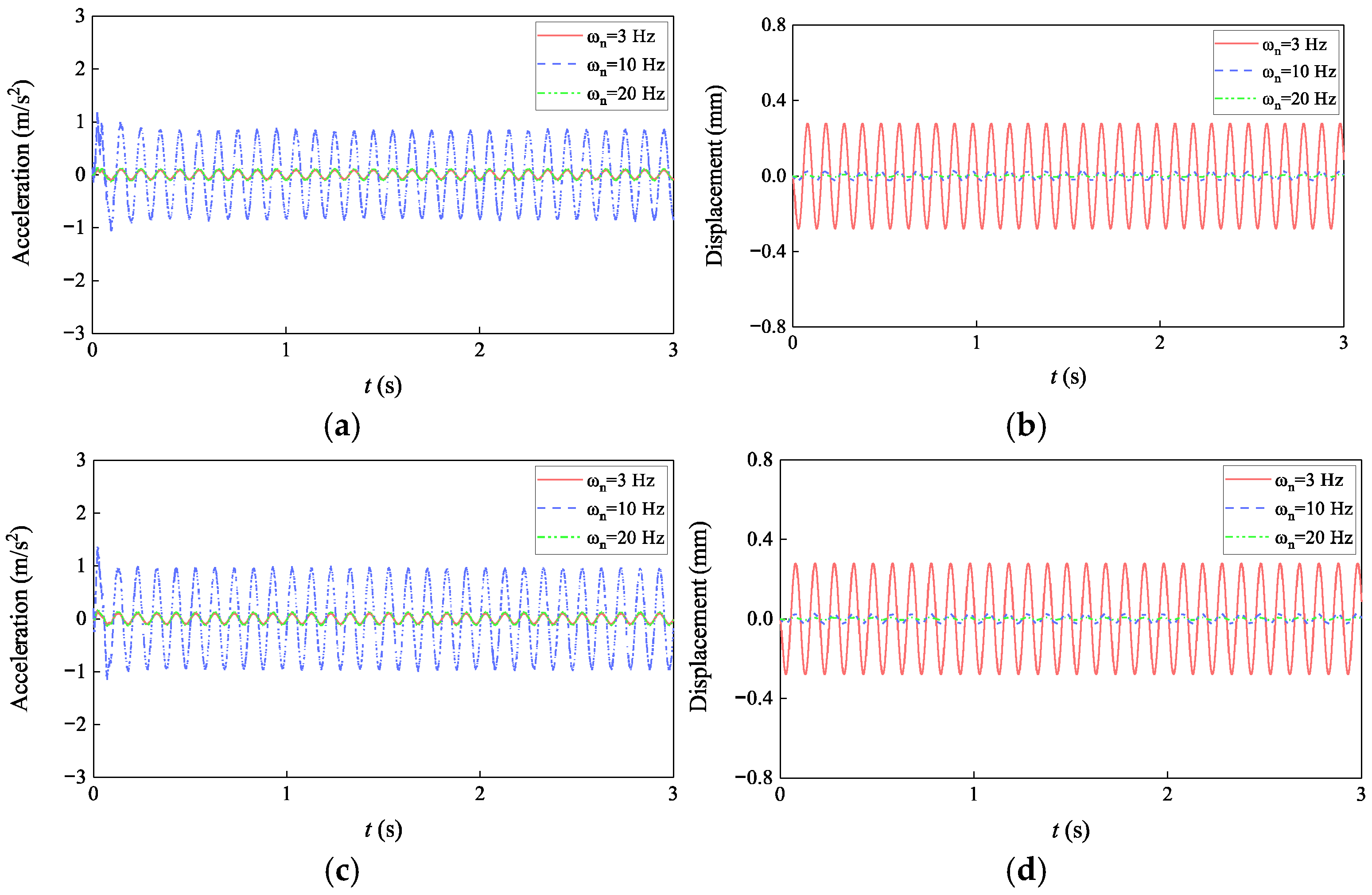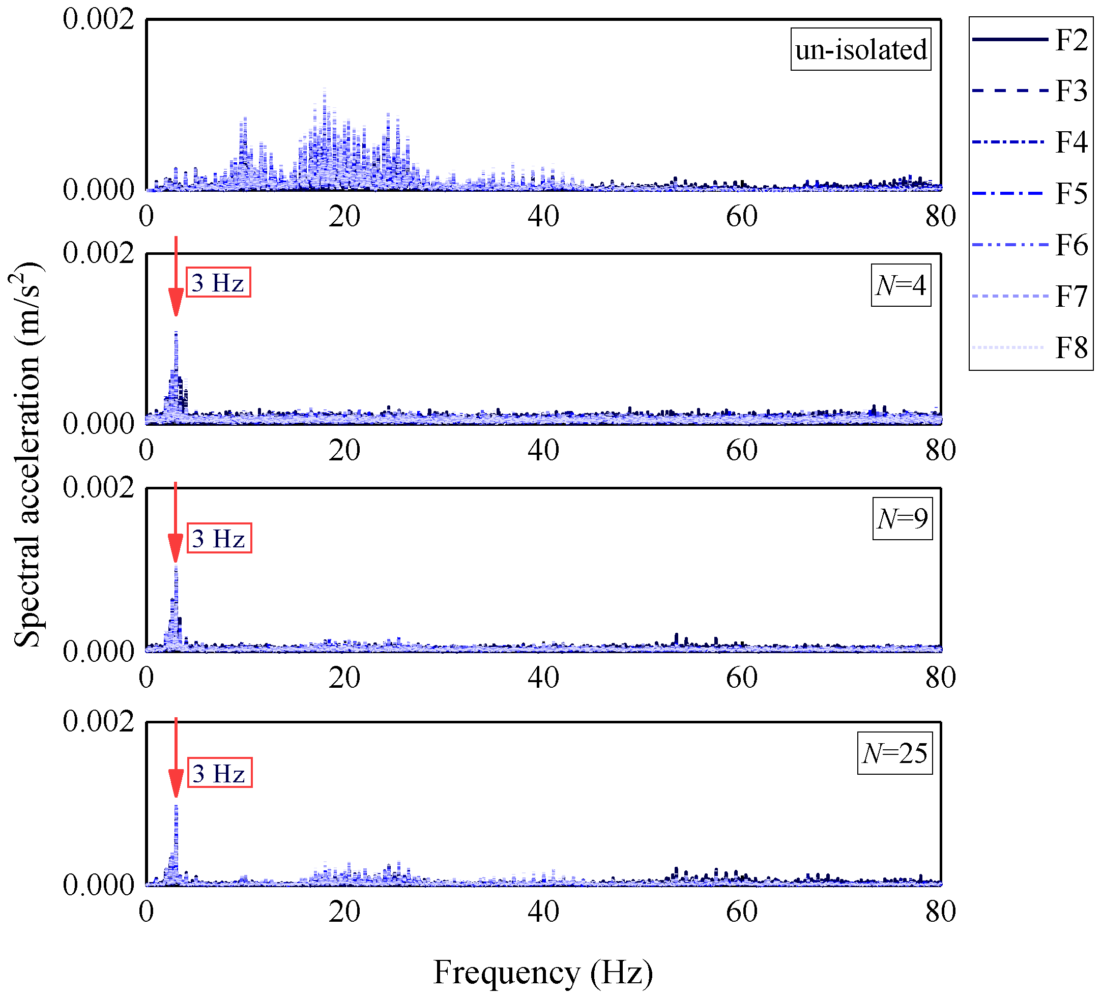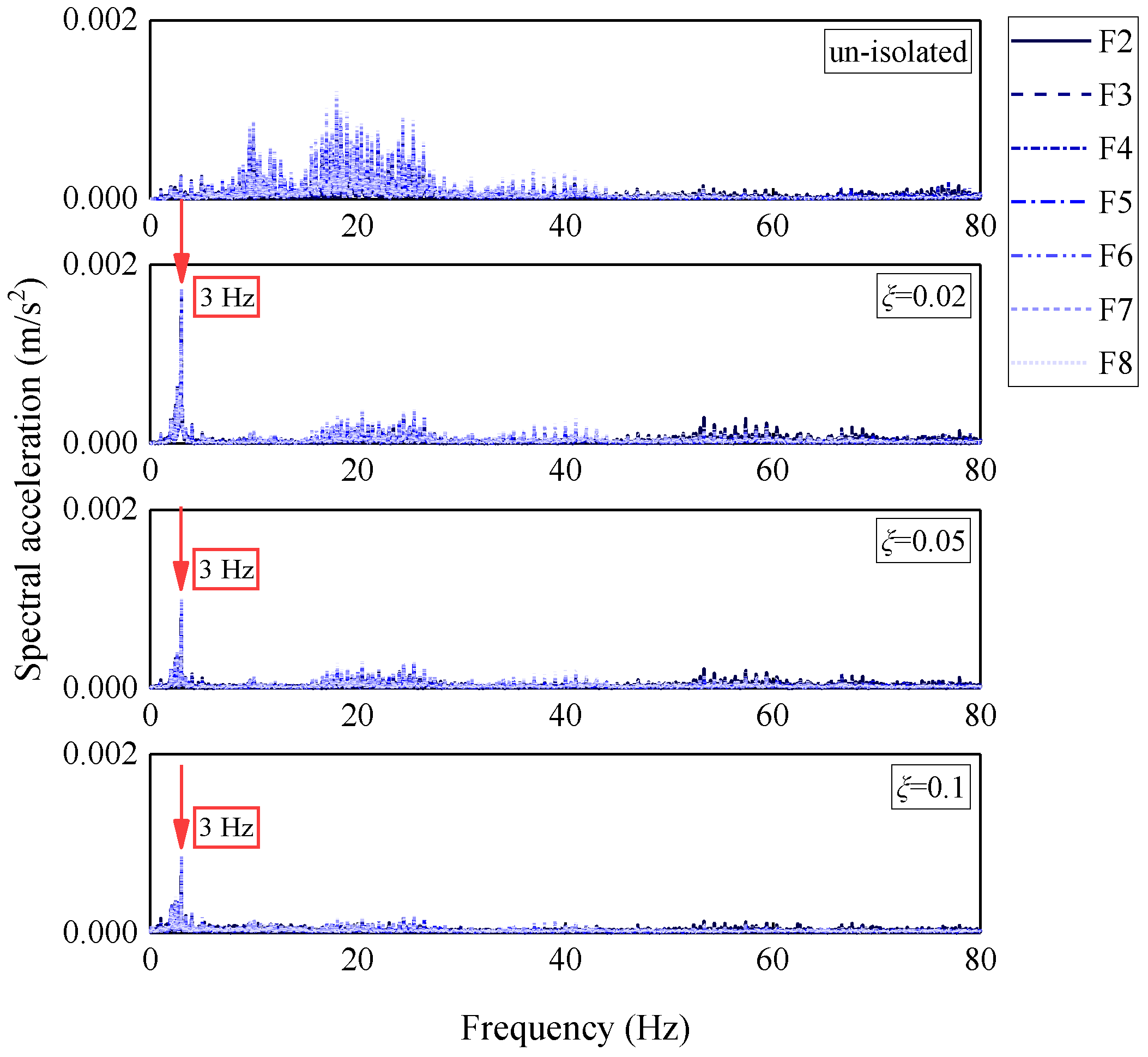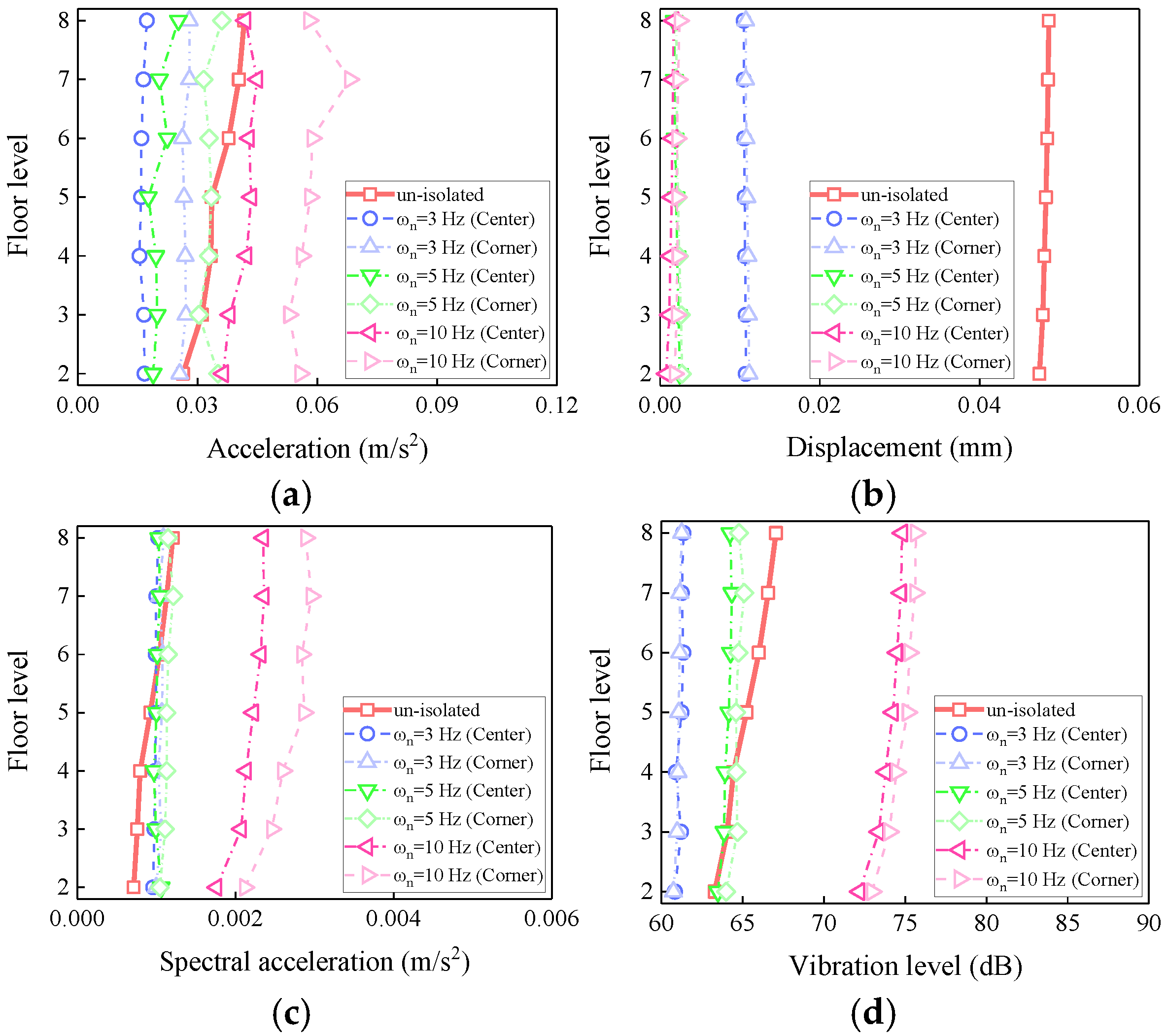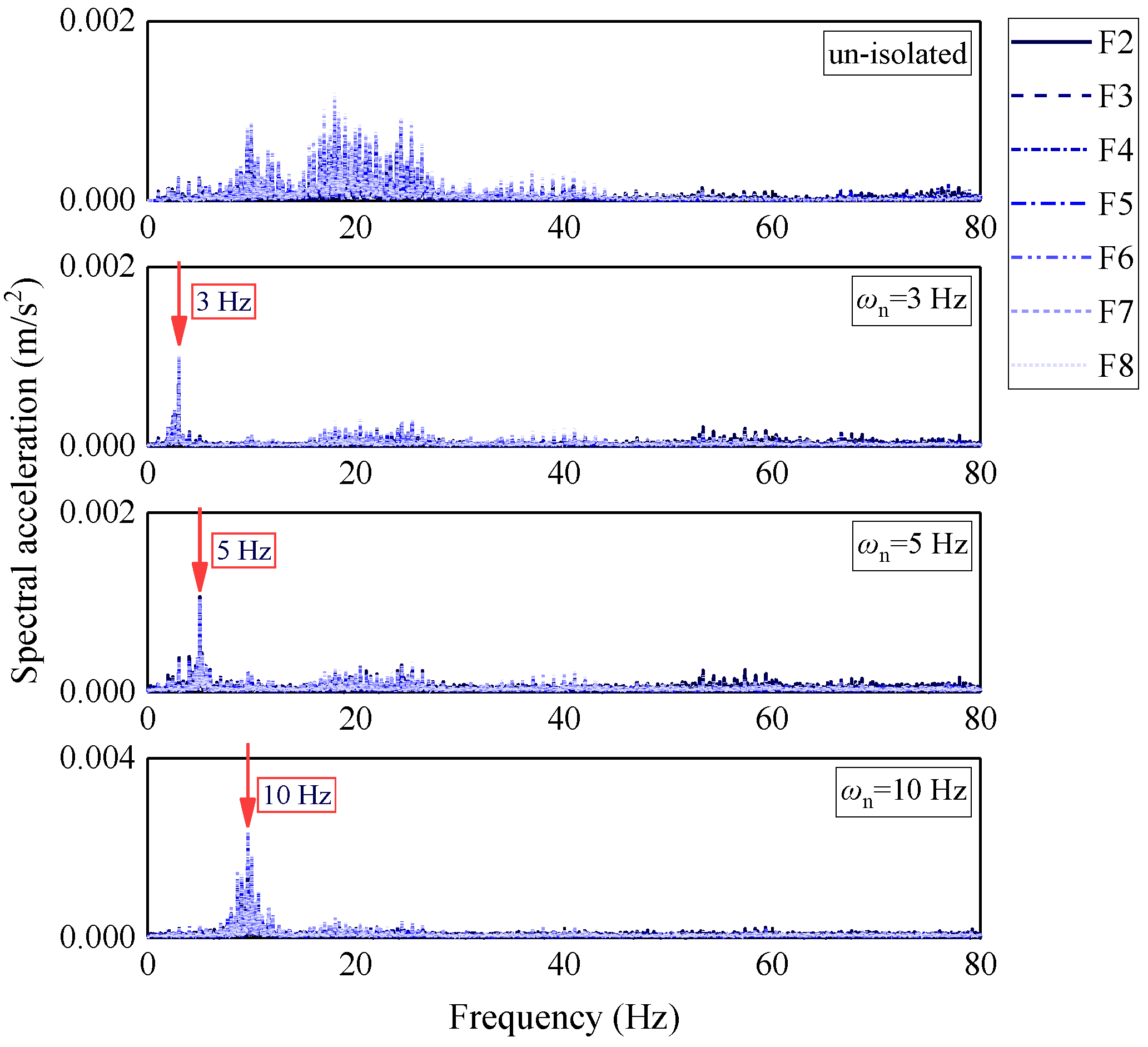| Isolation frequency | ωn = 3 Hz | ωn = 5 Hz | ωn = 10 Hz | ||||
