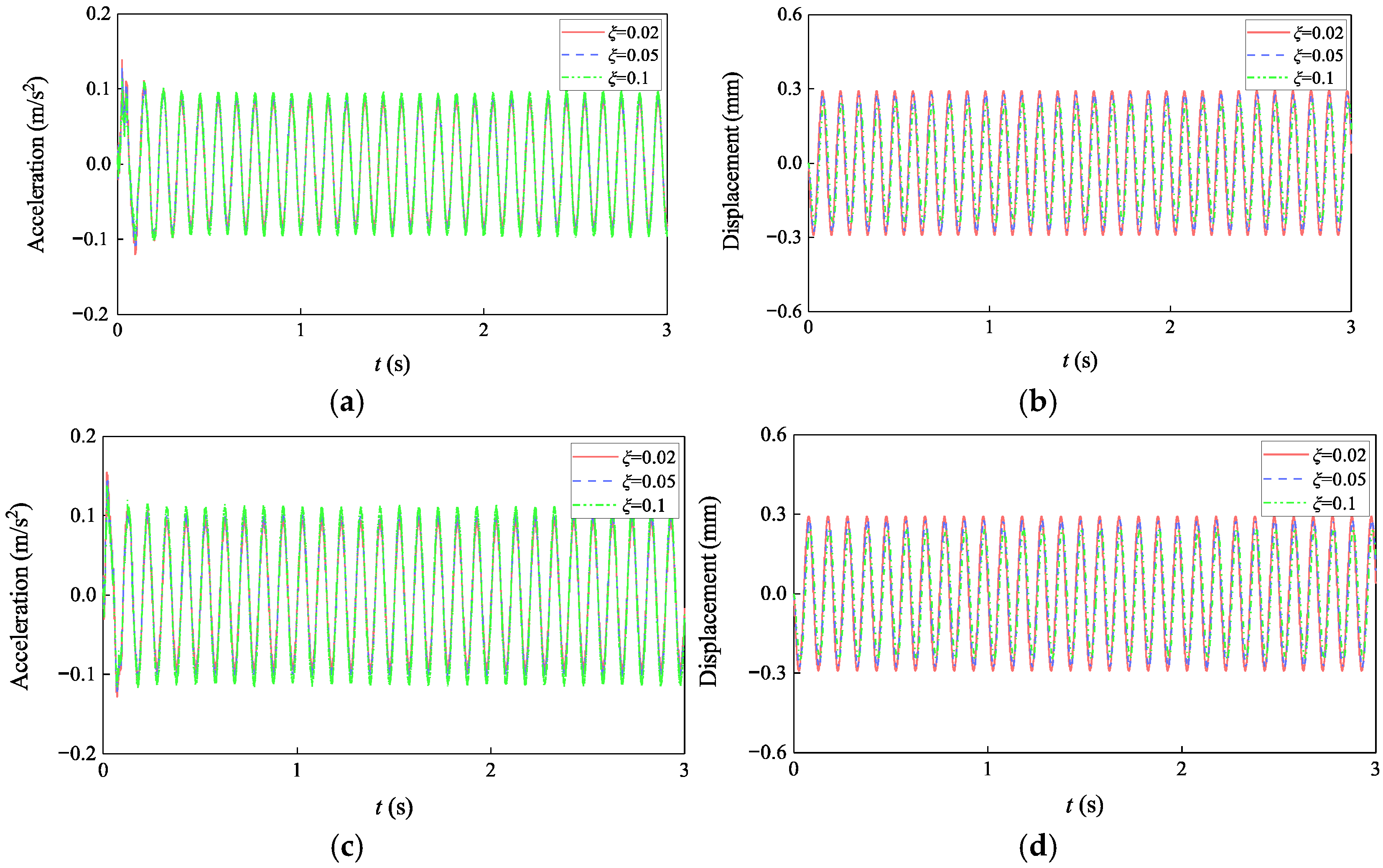 | Damping Ratio | ξ = 0.02 | ξ = 0.05 | ξ = 0.1 | ||||