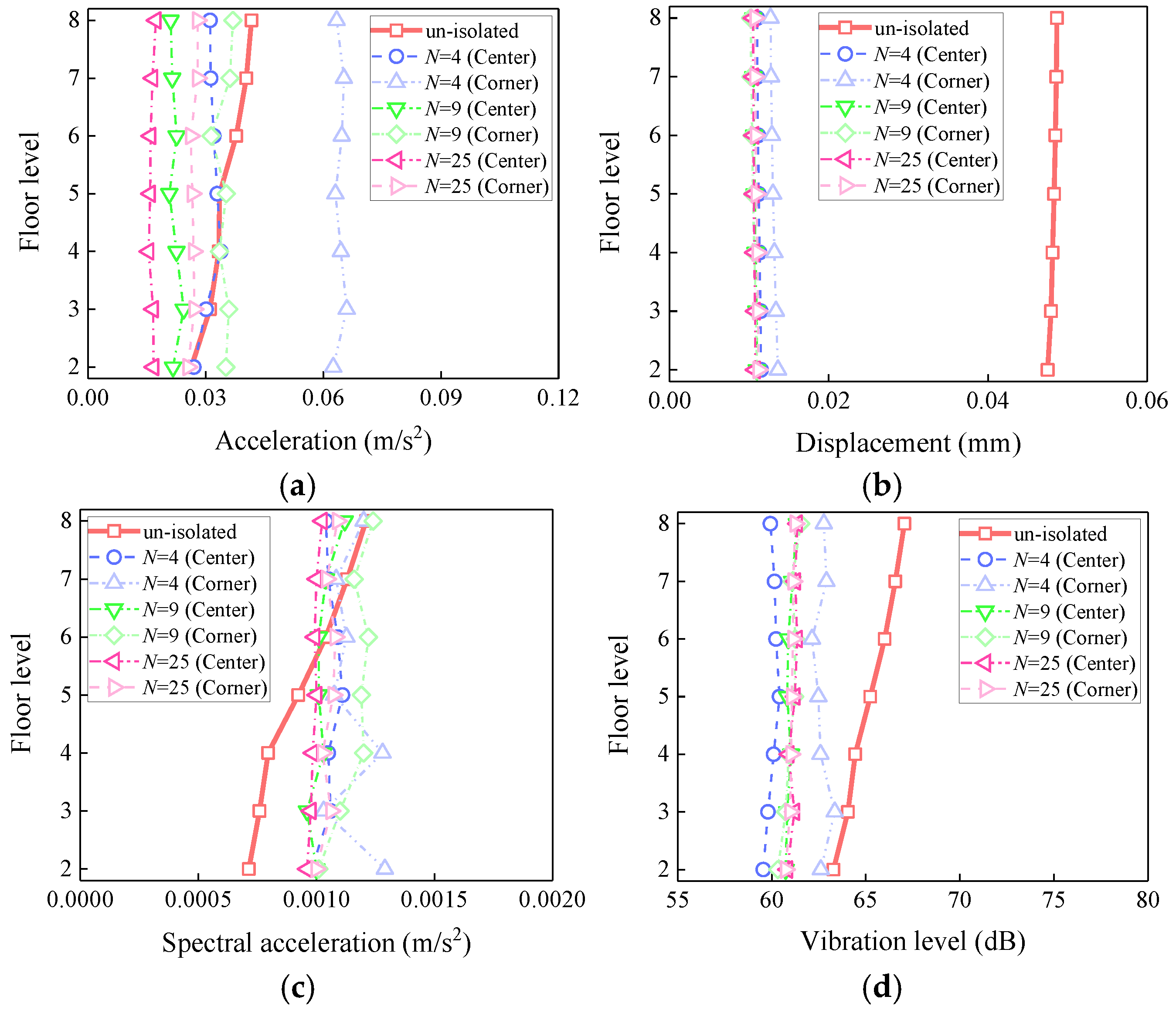 | Vibration level (dB) | Non-isolated | 67.05 | |||||