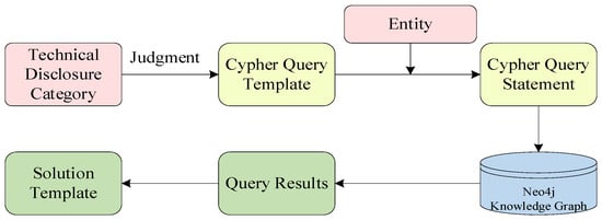 After the technology disclosure scheme template was defined, entity and attribute recognition could be performed based on user requirements. The information obtained through entity and attribute category similarity matching was then embedded into the corresponding Cypher query statement, connected to the Neo4j database, and the knowledge retrieval task was executed. Subsequently, based on the predefined technology disclosure scheme template, the retrieval results were embedded into the template. A schematic diagram of this implementation process was shown in Figure 8. The generation of process flow charts was implemented through rule-based traversal of the multimodal knowledge graph. Each construction task is represented as a node, while edges encode the precedence constraints among tasks. The generation process follows three logical steps: (1) identifying the starting tasks without predecessors, (2) iteratively expanding successor tasks according to topological order while ensuring all constraints are satisfied, and (3) outputting the ordered task sequence together with the linked multimodal resources. This procedure ensures that the generated process flow strictly respects task dependencies encoded in the knowledge graph, thereby improving the reproducibility of the results. For illustration, consider a query regarding the excavation stage of a deep foundation pit. The inference mechanism begins by identifying the starting task (Diaphragm Wall Construction). Based on the precedence relations encoded in the knowledge graph, it then infers the next tasks (Excavation to −3.0 m, followed by Steel Strut Installation). The reasoning path continues by expanding successor nodes until the full sequence of excavation and support operations is produced. This example demonstrates how the rule-based traversal ensures that the generated process strictly follows technological and safety constraints. Moreover, the framework supports dynamic updating through incremental knowledge graph modification. When new information is introduced (e.g., revised excavation depth or unexpected soil conditions), corresponding nodes and relations are added or updated in the graph. The process flow generation module then re-infers the task sequence based on the revised graph structure, ensuring that the Construction Technology Disclosure plan remains consistent with current conditions. In practice, this allows rapid adjustment of disclosure content in response to design changes or unforeseen site events, with engineers validating and confirming updates through the system interface.