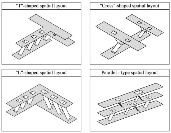 To ensure the scientific and comprehensive nature of the study, researchers consulted with subway design experts and conducted field investigations to select several subway stations in Qingdao that were complex and representative in terms of spatial structure and passenger flow routes. These subway stations are summarized into four types, as shown in Figure 5. Their spatial characteristics are shown in Table 1. Analyze and extract spatial characteristics and environmental information and use Sketch Up (2021) software to construct and design an accurate 1:1 scale model.
