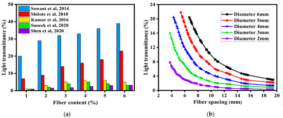 | [52] | POF | 0.3–0.75 | 0.5–1 | 0.06–0.36 | CS | Decrease | 15–1.3 | - | Increase in LT as the fiber ratio decreases and the fiber diameter and spacing increase |