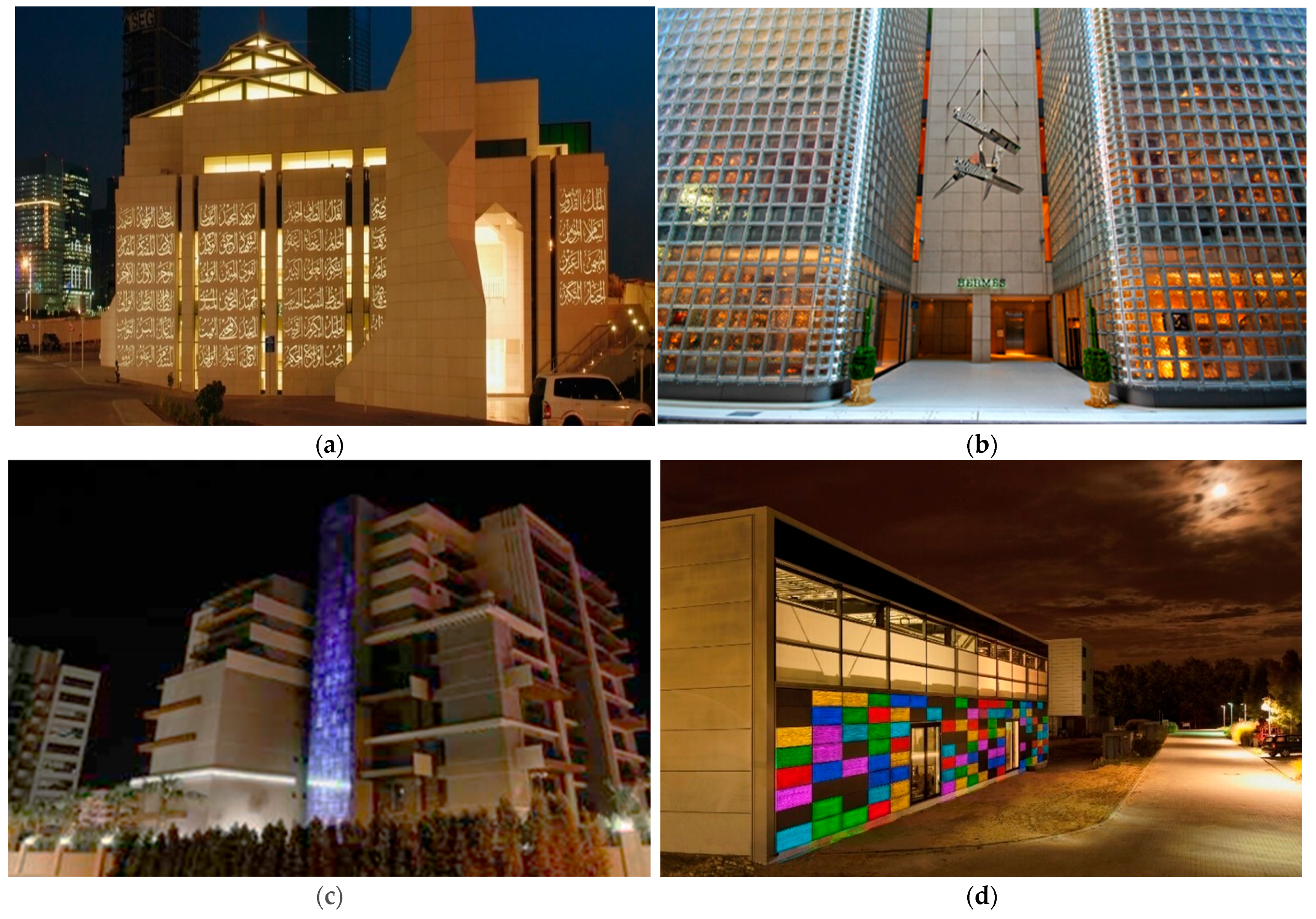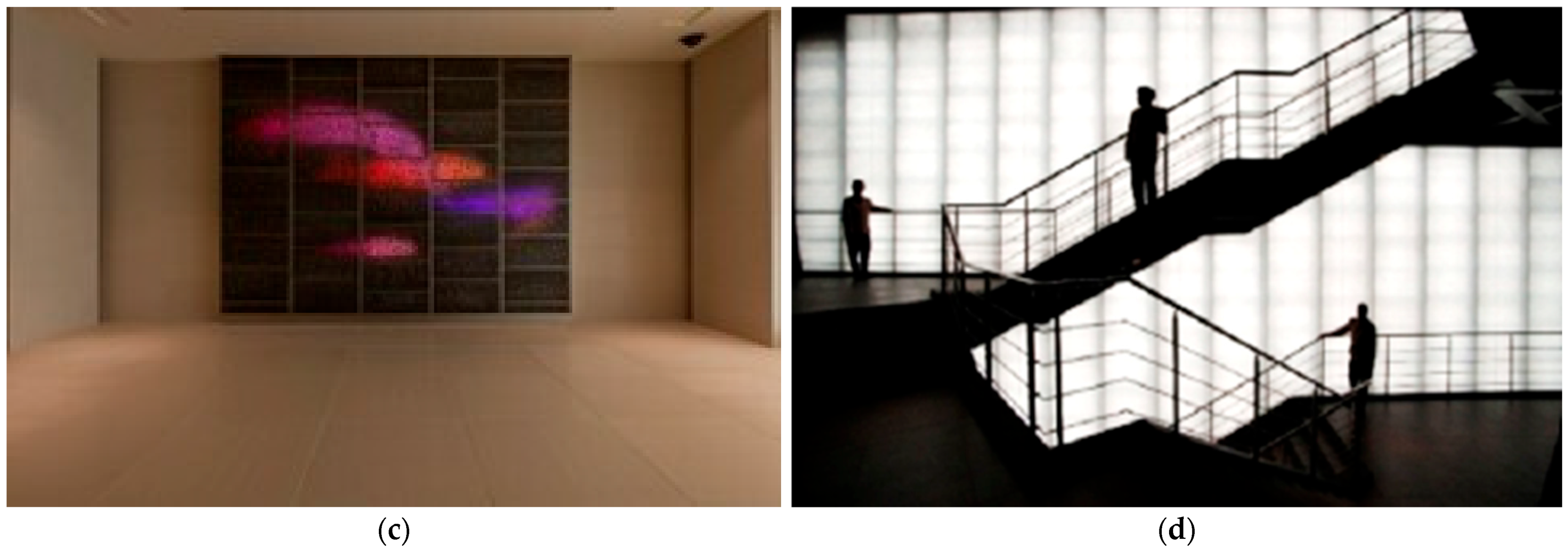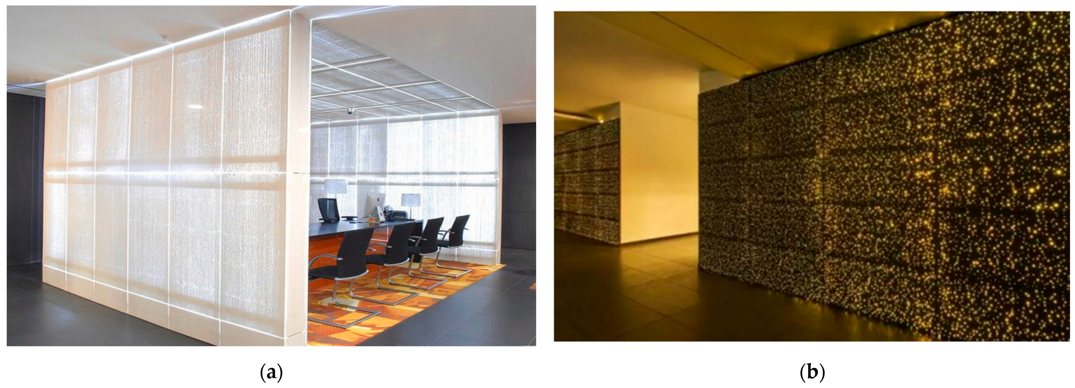 - Timina, A.; Yanova, R.; Popov, A.; Sorokoumova, T. Modern translucent materials and their impact on architectural forming. In E3S Web of Conferences; EDP Sciences: Les Ulis, France, 2019; p. 1035. [Google Scholar]