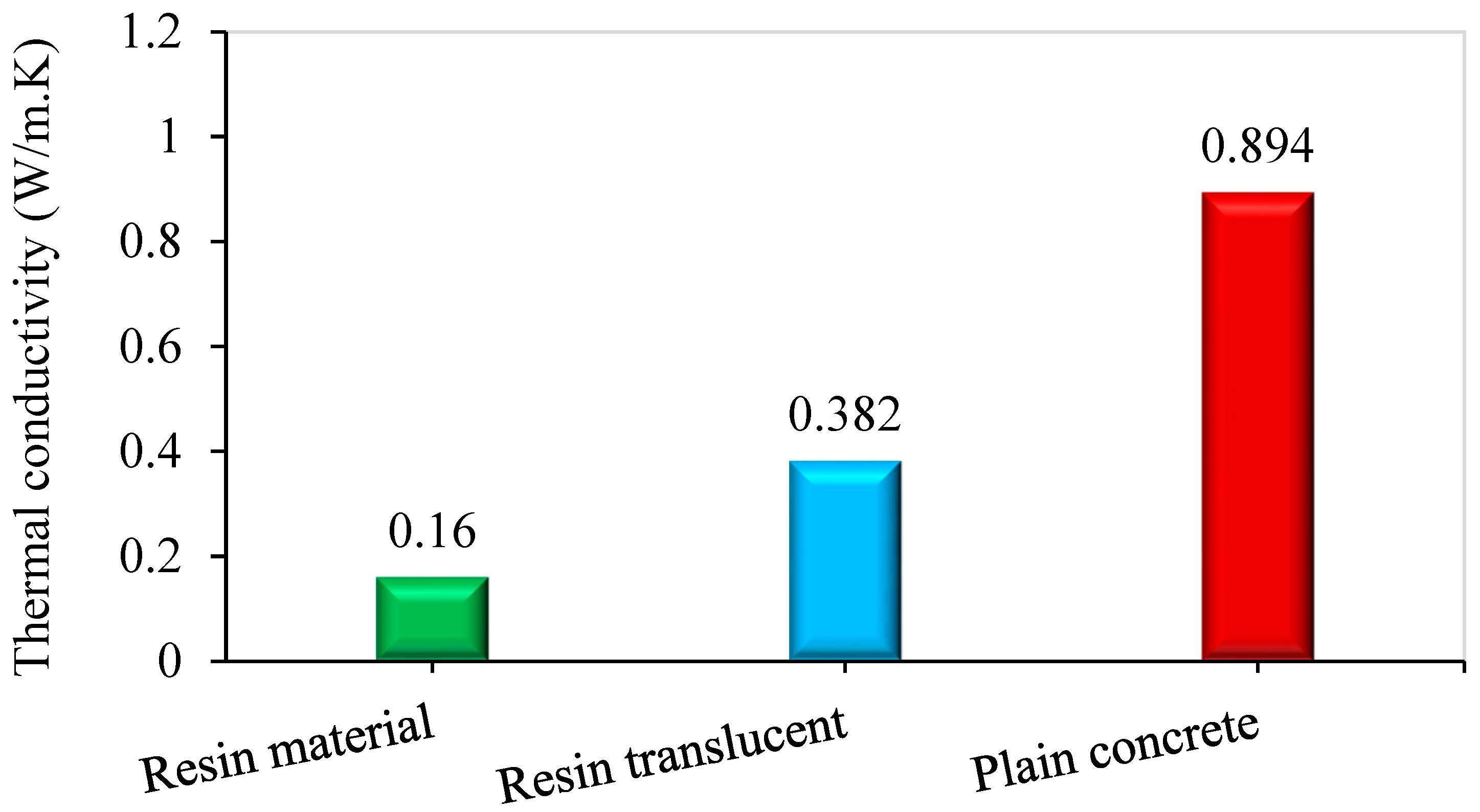 - Abdulmajeed, N.S.; Said, S.H. Compressive characteristics of resin translucent cement mortar (RTCM) used in the external walls to rationalize the energy spent inside the building. Case Stud. Constr. Mater. 2022, 17, e01687. [Google Scholar] [CrossRef]