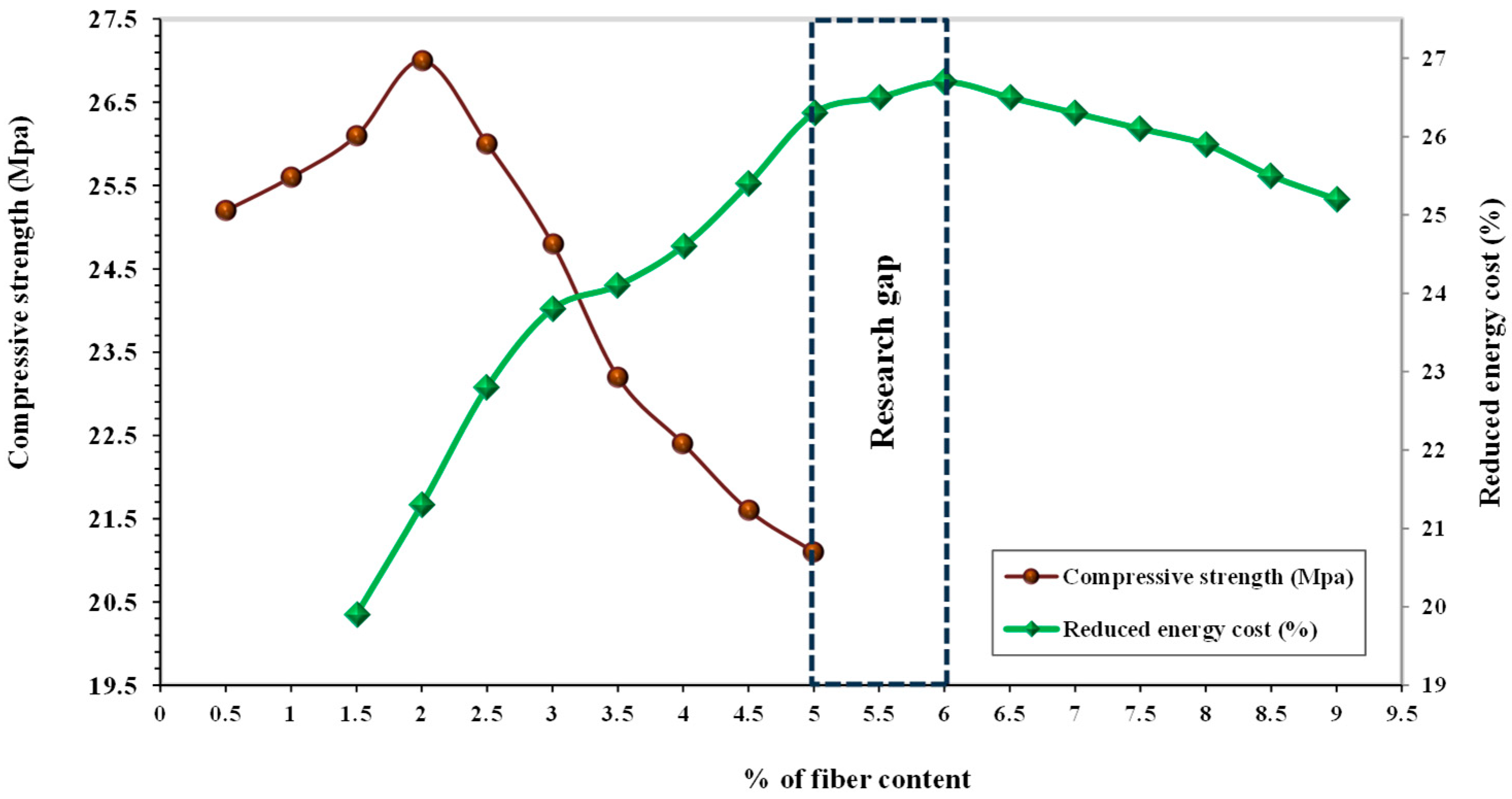 - The optimal fiber ratio in concrete volume is less than 5% for enhanced mechanical properties and 6% or more for energy savings.