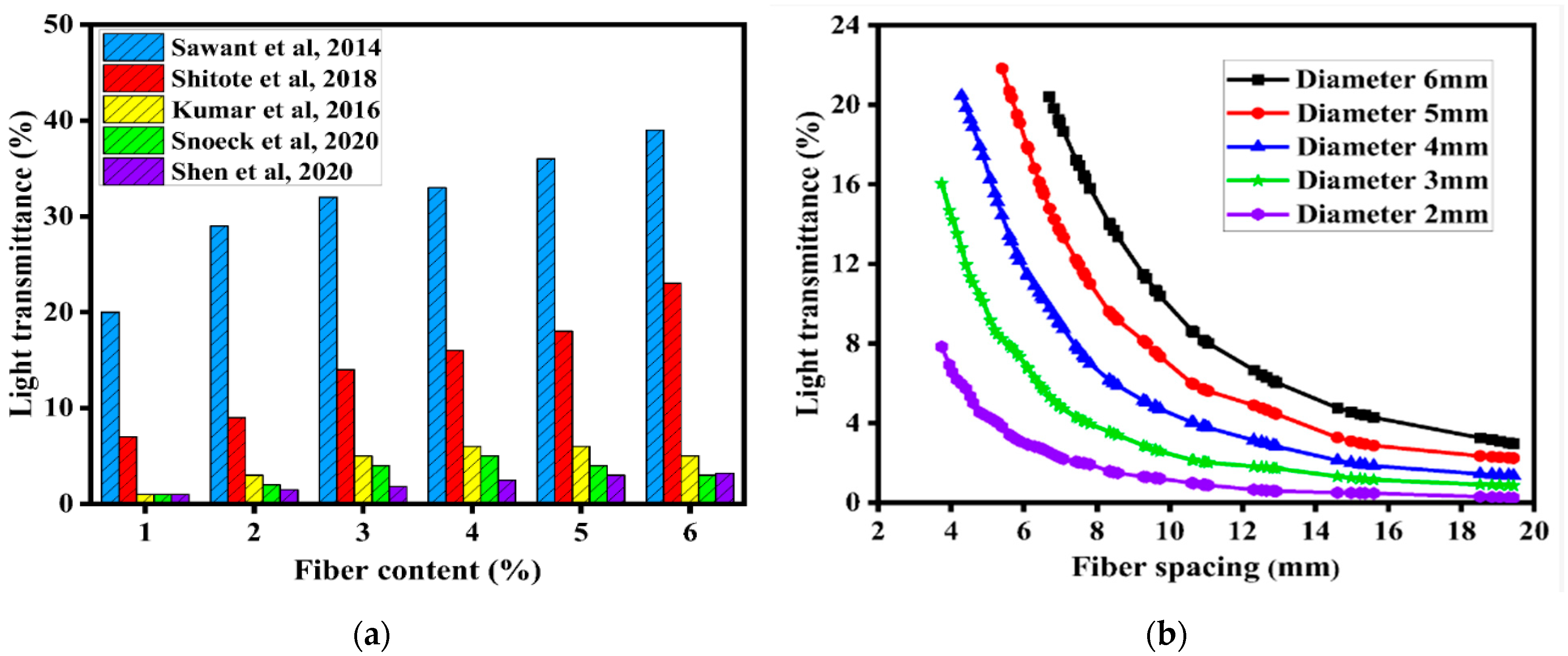 - Palanisamy, C.; Krishnaswami, N.; kumar Velusamy, S.; Krishnamurthy, H.; kumaar Velmurugan, H.; Udhayakumar, H. Transparent concrete by using optical fibre. Mater. Today Proc. 2022, 65, 1774–1778. [Google Scholar] [CrossRef]