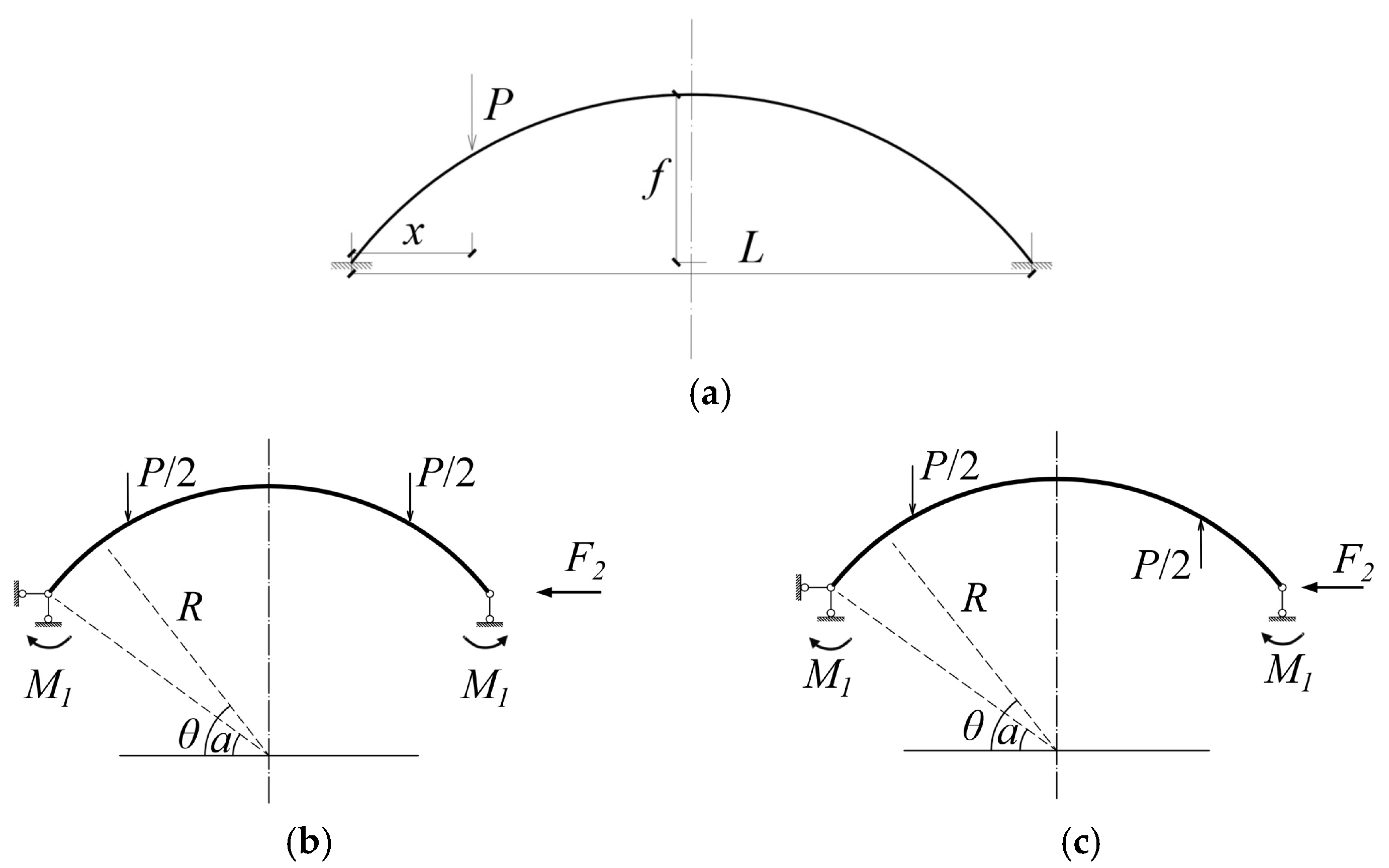Appendix A. Theoretical Analysis for Internal Forces in CSC Arches