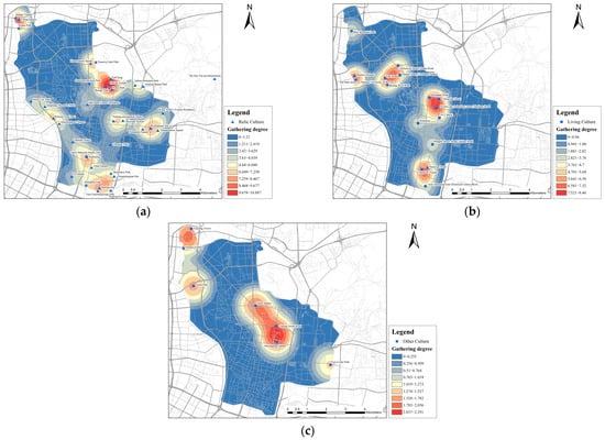 (a) Aggregation patterns of cultural heritage sites; (b) aggregation patterns of living cultural sites; (c) aggregation patterns of other cultural sites.