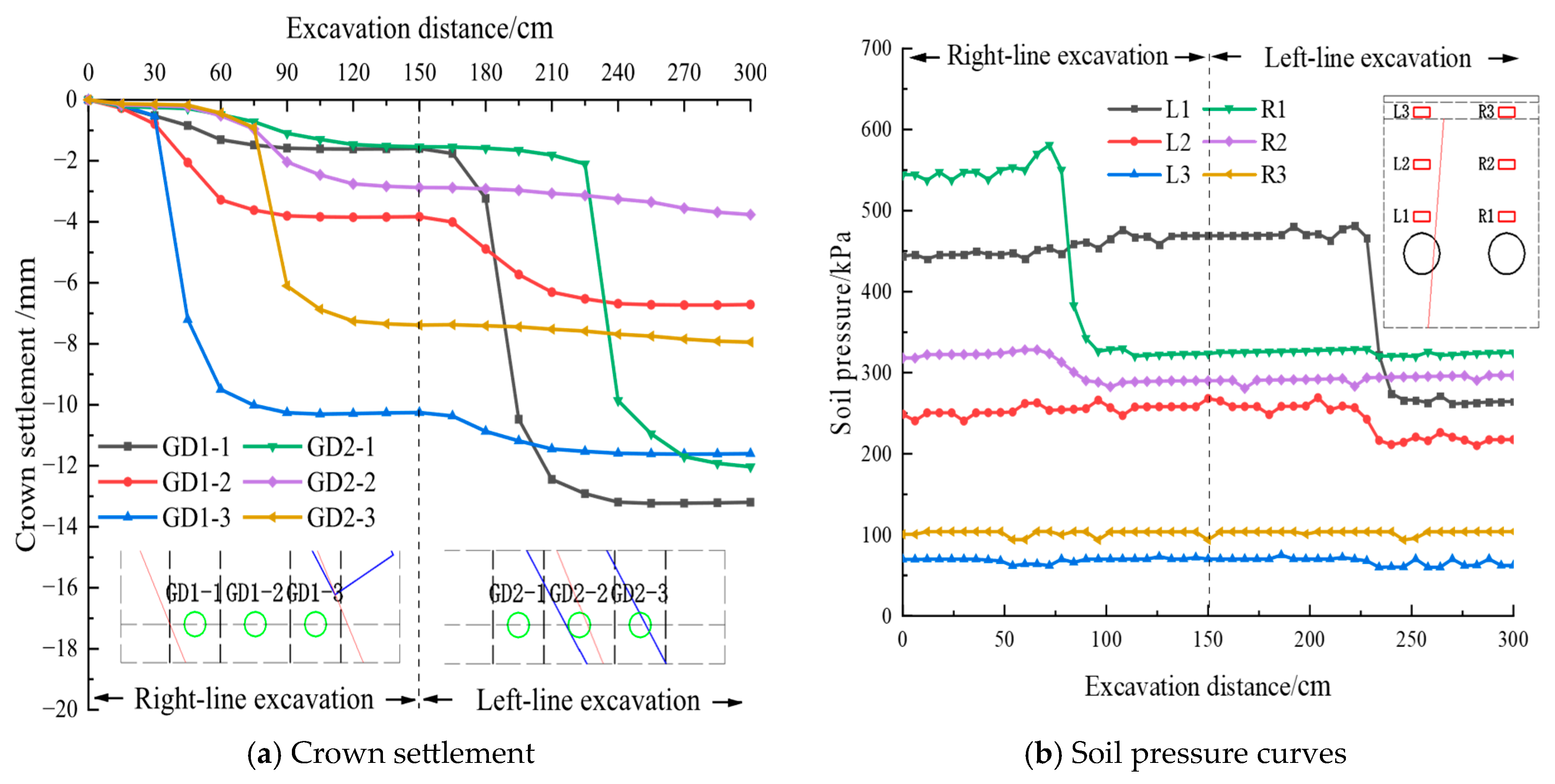 - Wang, Z.; Feng, W.; Wu, S.; Wu, P.; Xu, S.; Yao, Z.; Sun, J. Research on Strata Deformation Induced by EPB Tunneling in Round Gravel Stratum and Its Control Technology. Appl. Sci. 2022, 12, 10553. [Google Scholar] [CrossRef]