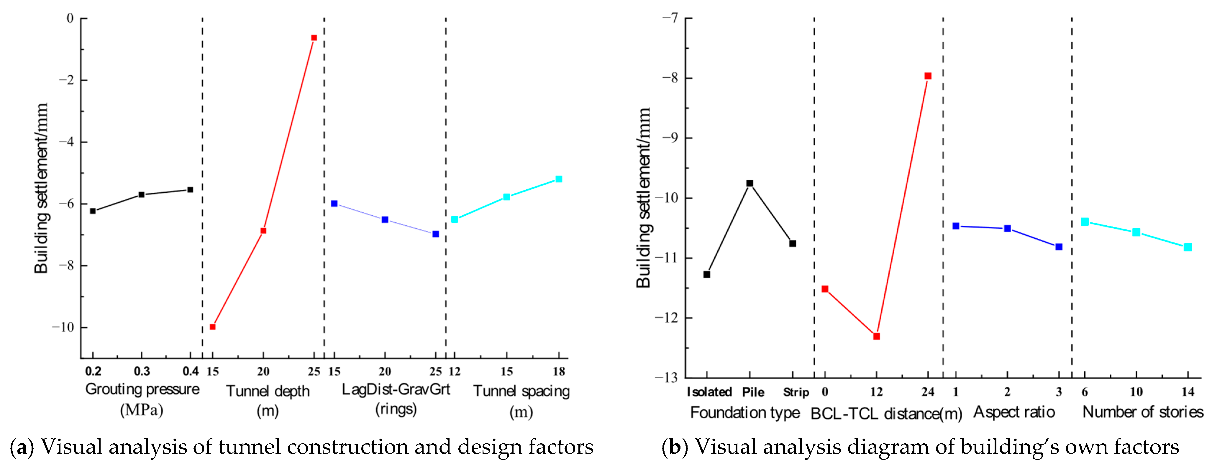 - Sensitivity analysis shows that tunnel depth, grouting pressure, and the relative position between building and tunnel are the dominant factors affecting building settlement, highlighting their importance for risk control and design optimization.