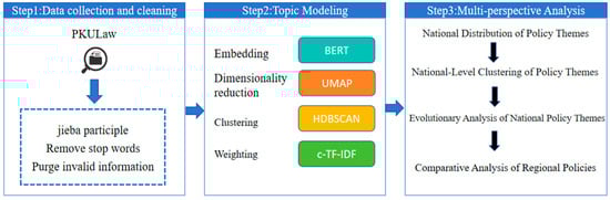 This study performs topic identification and evolutionary analysis on urban renewal policy texts in China. The research steps for this study are shown in Figure 1.