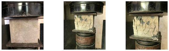 The panels’ top wythe was made of self-compacting concrete, and the bottom wythe was shotcreted, which complied with ACI 318 guidelines [44]. The top and bottom concrete wythes measured 63.5 mm and 12 mm in thickness, respectively. Tensile tests were performed on the steel bar truss component and the mesh in accordance with ASTM E8 standard [45]. In addition, the concrete’s compressive strength was evaluated in three samples as shown in Table 1, and after 28 days, it reached 18.13 MPa. Every concrete sample was tested (Figure 1) in accordance with ASTM (Anon 2005) [46] procedures, guaranteeing a thorough and consistent assessment, using 150 mm cube specimens. Although ASTM C39 [46] is primarily intended for cylindrical specimens, a similar testing procedure was followed, with necessary adjustments to loading rate and platen contact to accommodate cube geometry, thereby ensuring consistency and reliability in results.