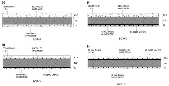 - SCIP-4 denotes a panel with reinforcement #3 at 200 mm spacing in the top wythe (Figure 2d).