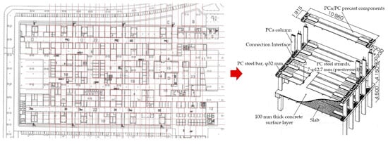 For example, Ruhr University Bochum in Germany (Figure 9a) and the University of Oran 1 Ahmed Ben Bella (Figure 9b), both constructed during this period, employed prefabricated reinforced concrete with structural modules based on column grids measuring 7.5 and 7.7 m, respectively. The building story height and the service duct interlayer are both sub-modules of the basic module. Diverging from the regular grid typologies mentioned above, the design of Marburg University’s campus exhibited pronounced structuralist characteristics: it resembled an assemblage of “building blocks” governed by an intrinsic logic—the primary structural panels measured 7.2 m × 7.2 m, forming square “reinforced concrete tables” as load-bearing systems. These square load-bearing systems are staggered and stacked, forming the overall grid framework of the campus (Figure 10). This prefabrication and industrialization approach effectively reduced the on-site construction labor demand, mitigated the labor shortage confronting Europe at that time, and improved environmental performance by minimizing energy waste and material loss during the construction process—thereby facilitating carbon emission reduction.