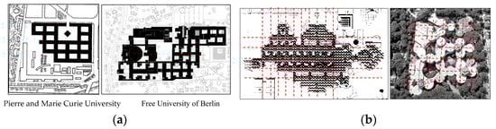(a) Campus grids of Jordan University of Science and Technology; (b) Shenyang Jianzhu University.