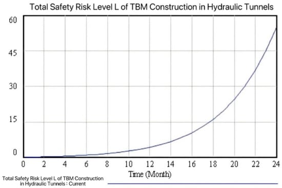 The Vensim software was used to conduct the evolution analysis of safety risks in the TBM construction of hydraulic tunnels. The model time was set in months, and the system INITIALTIME was set to 0, FINALTIME to 24, and TIMESTEP to 1.