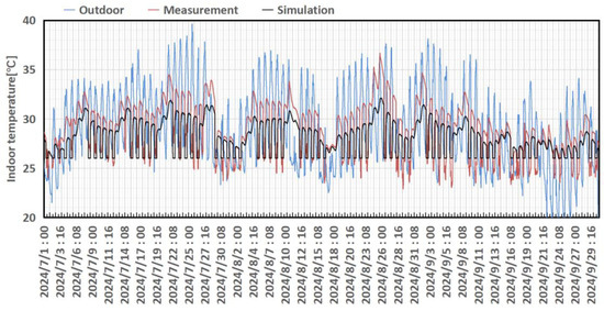 Several measurements were conducted at the site, including that of indoor air temperatures and relative humidity, along with exterior and interior surface temperatures of walls and windows. These measurements covered the cooling season from July to September. In this study, only the data of air temperature were considered.