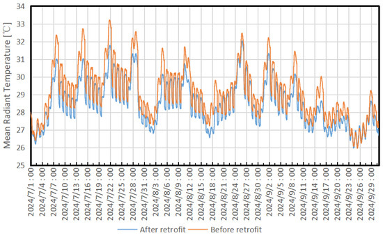 Meanwhile, research has shown that these materials can also generate unintended negative impacts on their surrounding environment. While they may lower ambient air temperatures, their reflective properties can increase mean radiant temperature (MRT) at the pedestrian level, leading to greater heat stress [24,25]. In addition, highly reflective façades can cause intense glare, visual discomfort, and even safety hazards in adjacent streets and buildings [26]. At night, reflective surfaces can further amplify light pollution by redirecting artificial light into the sky, worsening urban skyglow [27]. These challenges highlight the importance of evaluating reflective retrofits before implementation.