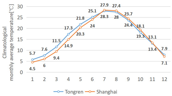 The investigated building is located in Tongren, a southwestern Chinese city. According to the climate zoning of the Chinese thermal standard GB50176−93 [43], Tongren’s climate is classified as the Hot Summer and Cold Winter (HSCW) zone, with significant seasonal temperature fluctuations.