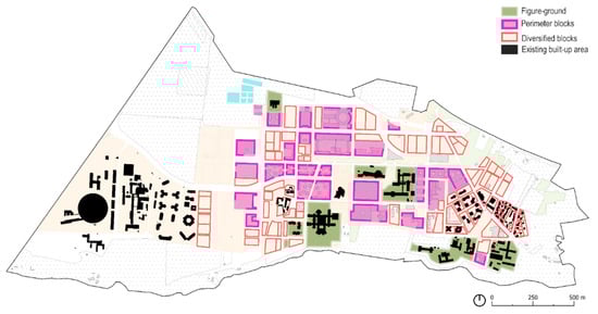 38] focused on the built/unbuilt relationship for population density analysis, we extended this approach to quantify specifically the balance between built and open spaces within individual blocks, providing an objective measure of the “flexibility of built form and open space” that the author identified as an important morphological characteristic.
