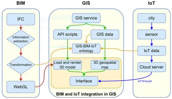 - Kang, T.W.; Hong, C.H. A study on software architecture for effective BIM/GIS-based facility management data integration. Autom. Constr. 2015, 54, 25–38. [Google Scholar] [CrossRef]