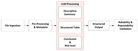 In LLMs, the temperature parameter controls the randomness of output generation, with higher temperatures producing more diverse and creative responses [47]. For this analysis, we apply a different temperature for each processing stage (see Table 2). A moderate value of 0.5 was chosen for the descriptive summary to allow linguistic variation while preserving technical accuracy. For structured data extraction, a deterministic setting of 0.0 was used to ensure consistent, machine-readable outputs. The risk assessment stage was assigned an intermediate temperature of 0.3, reflecting the need to combine broad judgment with the assignment of a numerical risk score.