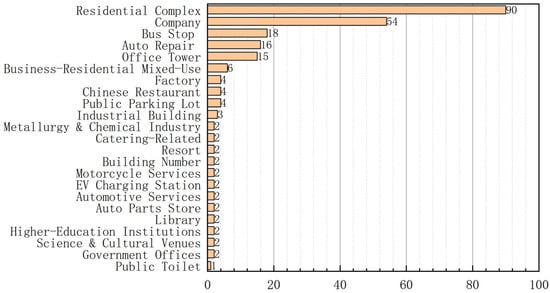 Statistical chart of various types of POIs in Qingzhou Mountain.
