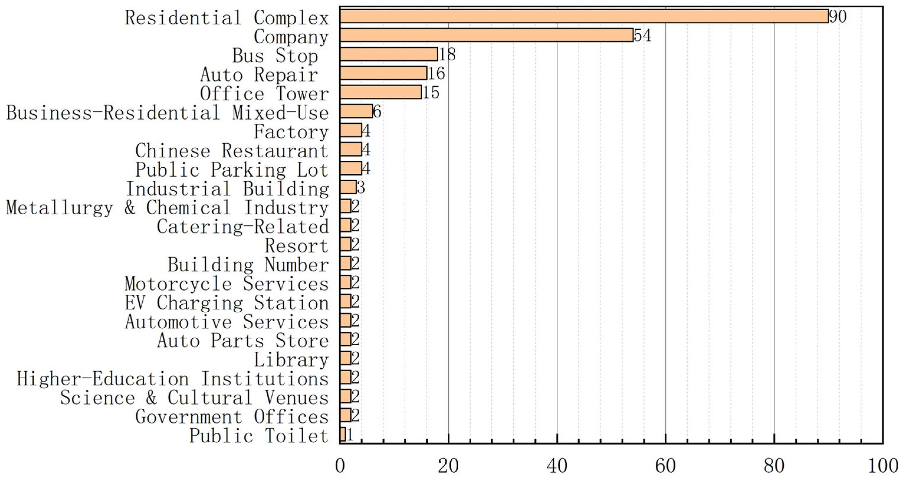 Figure 6), a total of 239 POIs were identified in Qingzhou Mountain, including 8 points related to industry/companies.
