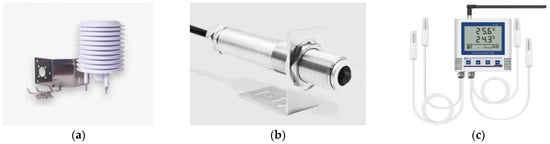 Measuring instruments: (a) outdoor weather station; (b) non-contact infrared thermometer; and (c) temperature sensor.