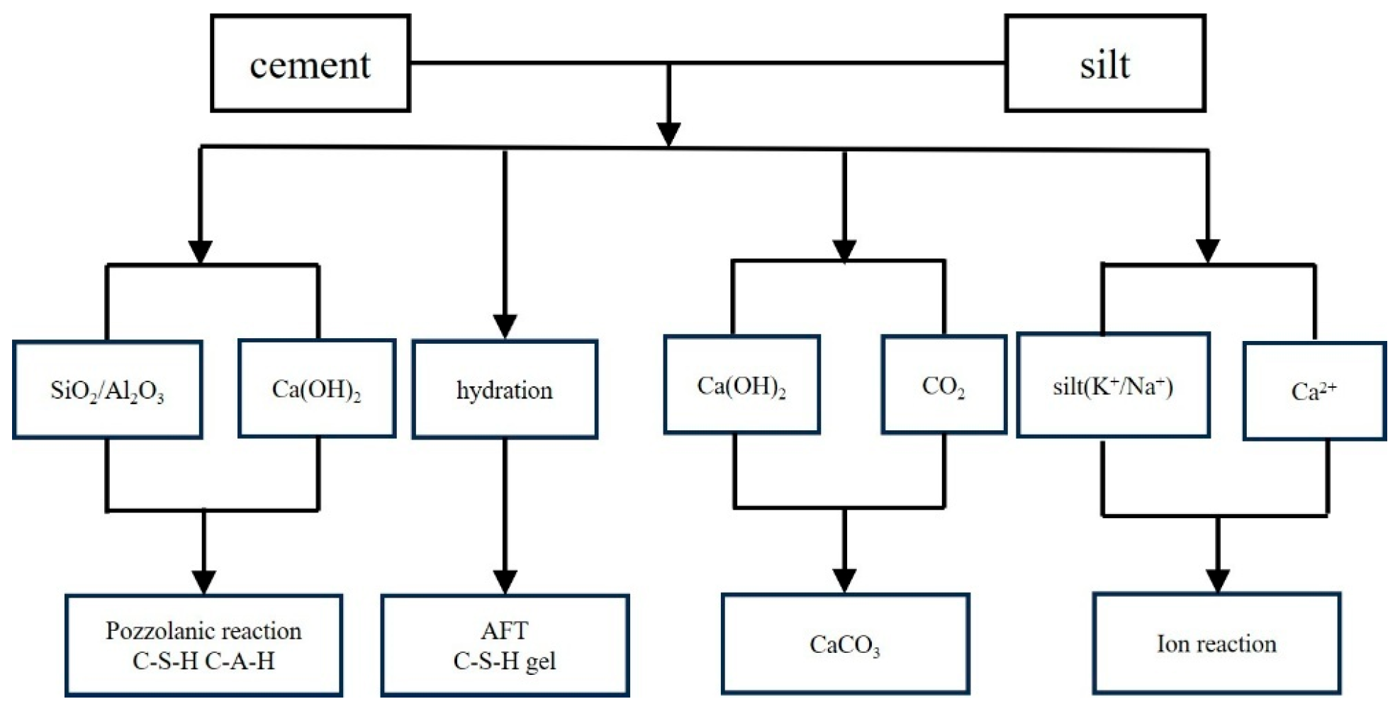 Xu, Z.; Xie, X.; He, M.; Luo, Z.; Wu, J.; Bin, J.; Yang, L.; Zhang, B. Research Review of Reaction Mechanism and Mechanical Properties of Chemically Solidified Silt. Buildings 2025, 15, 3431. https://doi.org/10.3390/buildings15183431