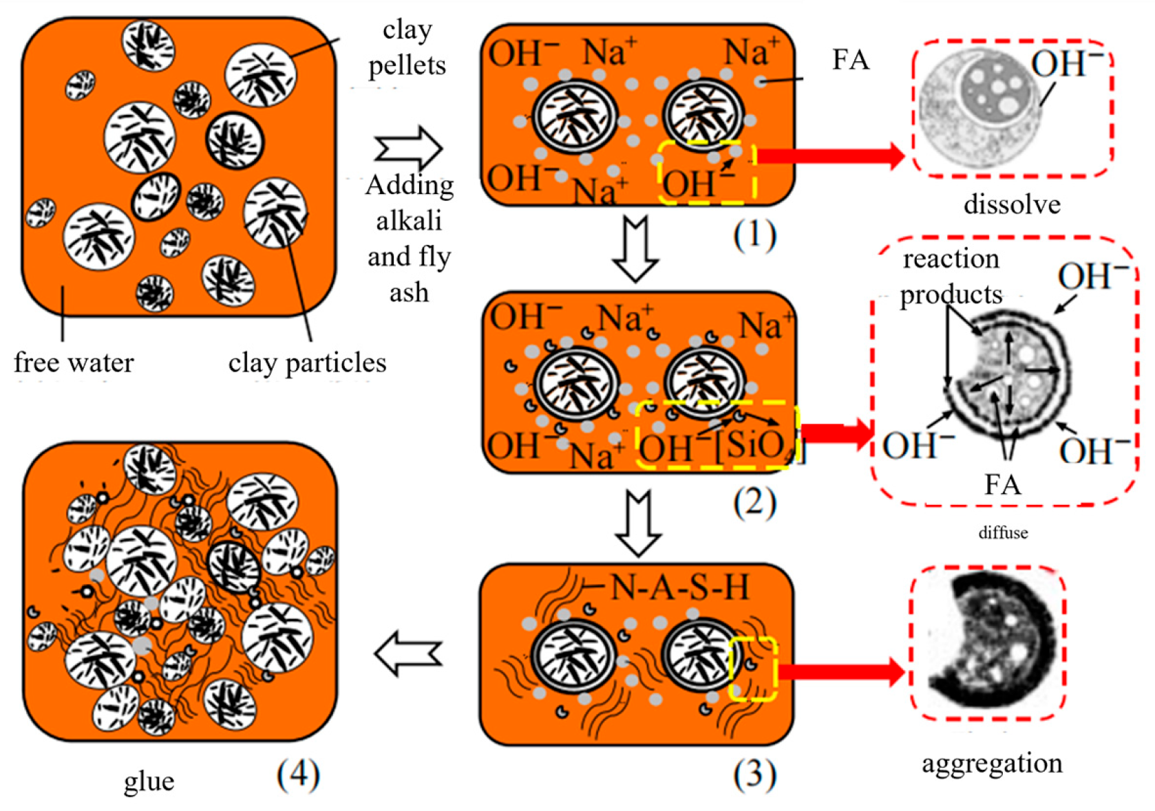2.2. Mechanism of Silty Soil Stabilization Using Industrial Waste-Based Curing Agents