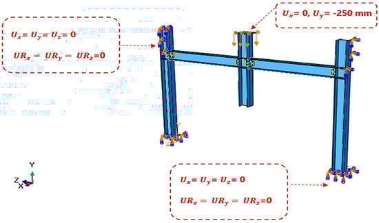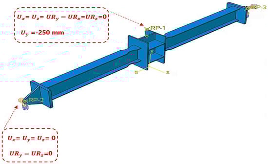 Boundary conditions adopted in the numerical simulation of specimen WUF-W-RBS-50-130-23, as experimentally tested and reported in the literature.