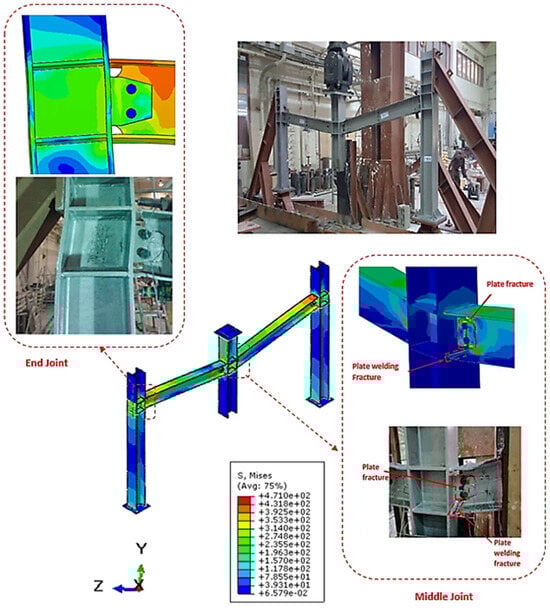 Despite these efforts, the combined effect of flange weakening and web openings is still not fully understood. To address this gap, the present study uses ABAQUS/Explicit v2016 for numerical analysis. The models are validated against experimental results to ensure reliability. The study focuses on failure patterns, load–displacement behavior, and the role of catenary action in resisting collapse after a middle column is removed.