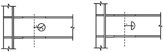 Design guidelines such as FEMA-350 [] suggest ways to improve ductility and energy dissipation in steel connections. One common method is the Reduced Beam Section (RBS), where parts of the beam flange are cut to force plastic hinges away from the column face. Another method is the Reduced Web Section (RWS), where holes are added in the web for the same reason. Both aim to shift damage away from the joint area.